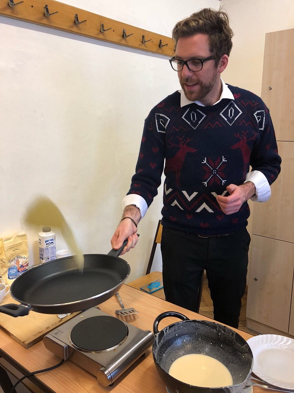 Der letzte Schultag vor den Weihnachtsferien wurde den SchülerInnen der 7CH von ihrem Klassenvorstand mit frisch gemachten Palatschinken versüßt:
