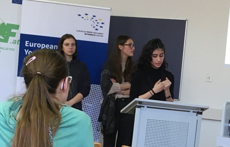 These were some of the questions fervently debated during this year’s EYP Mini Session at our school when students from Lessinggasse (7BH, 8AH) teamed up with students from various Viennese secondary school to discuss current political issues. Guided by experienced EYP chairs, each of the five committees first got to know each other through team building activities, then worked on drafting a resolution on their topic which was then presented and put up for discussion in the assembly.