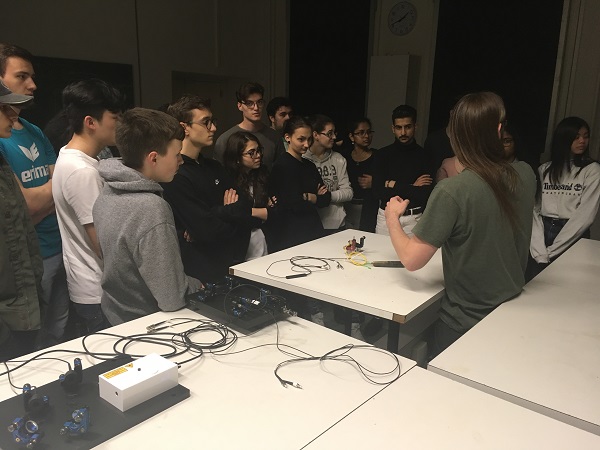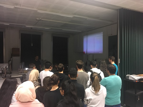 Die SchülerInnen wurden an der Fakultät für Physik von drei DoktorandInnen empfangen, welche ein Experiment zum Hong–Ou–Mandel–Effekt zeigten. Beeindruckend waren dabei vor allem die Gerätschaften, welche für das Experiment verwendet wurden. Laser, Strahlenteiler und Spiegel, sowie ein sehr teurer Detektor bildeten das Herzstück des Experiments. Die SchülerInnen konnten den Effekt beobachten und stellten interessierte Frage zum Experiment, aber auch zum Alltag eines Doktoranden.
