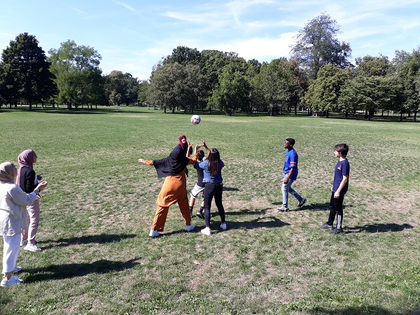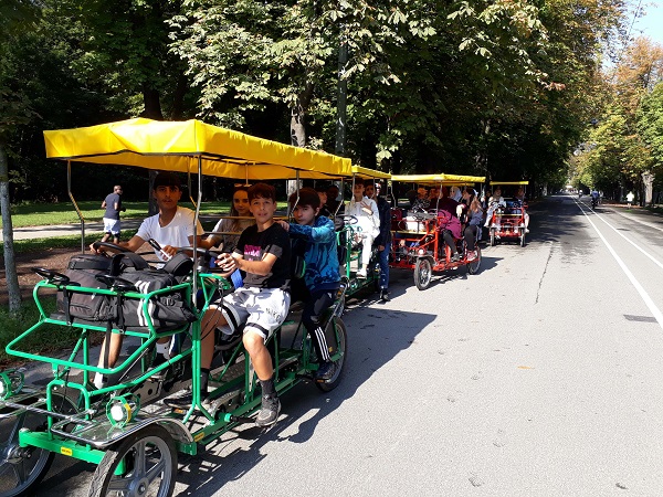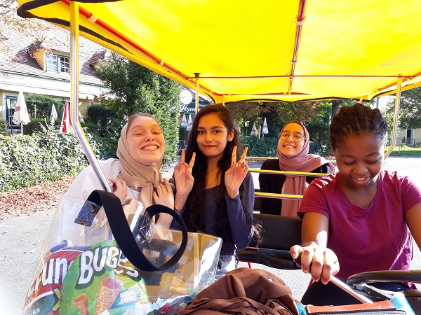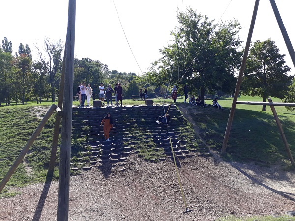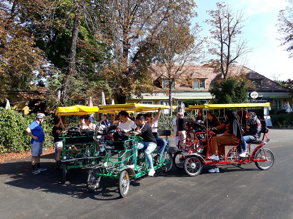 Nach einer kurzen Fahrt Richtung Prater machten wir eine kleine Wanderung an der Trabrennbahn vorbei zum Radverleih bei der Hochschaubahn. Für viele begann dann die erste Rikschafahrt ihres Lebens. Mit viel Spaß und Nervenkitzel ging es die Praterhauptallee hinunter zum Lusthaus und wieder zurück in den Wurstelprater. Viele sportliche Aktivitäten warteten auf der Jesuitenwiese auf uns: Fußball, Hochseilschaukeln, kleine Spiele und Gleichgewichtsstationen.