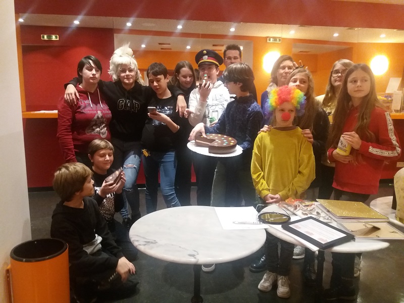 Und am 25.11.19 feierte die Bühnenspielgruppe 2 im Stück „Alles Gute“ mit der Hauptfigur Alina ihren 15. Geburtstag. Doch es war gar nicht so einfach für Alina, mit kaum Geld eine tolle Party auszurichten, die auch die neue Mitschülerin Nadine – aus reichem Elternhaus – beeindrucken kann. Zum Glück hat Alina einen einfallsreichen Bruder, der zwar nicht zum AMS geht, wie er eigentlich sollte, sondern lieber Hunde sittet… Aber so hat er die Schlüssel zu einer Luxusvilla, wo man total stylish feiern kann… Das Theater der Jugend zeigt mit diesem Stück von Lutz Hübner, wie schwierig es ist für Jugendliche, die mit Geldnöten aufwachsen, in ihrem Umfeld bestehen zu können.