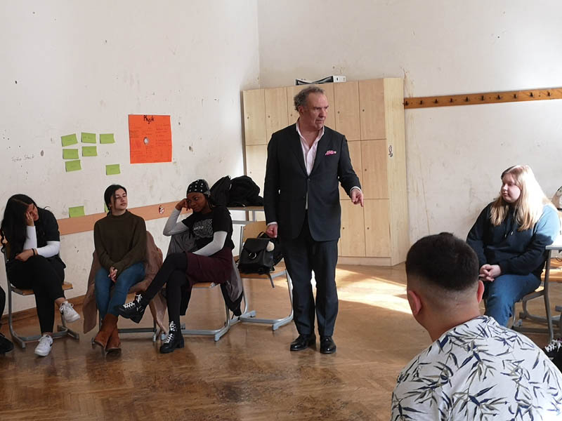 Nach einem gemeinsamen Kickoff in zwei Gruppen verteilten sich die Schüler*innen und die betreuenden Lehrkräfte auf die Workshops oder machten sich auf den Weg in die Stadt: