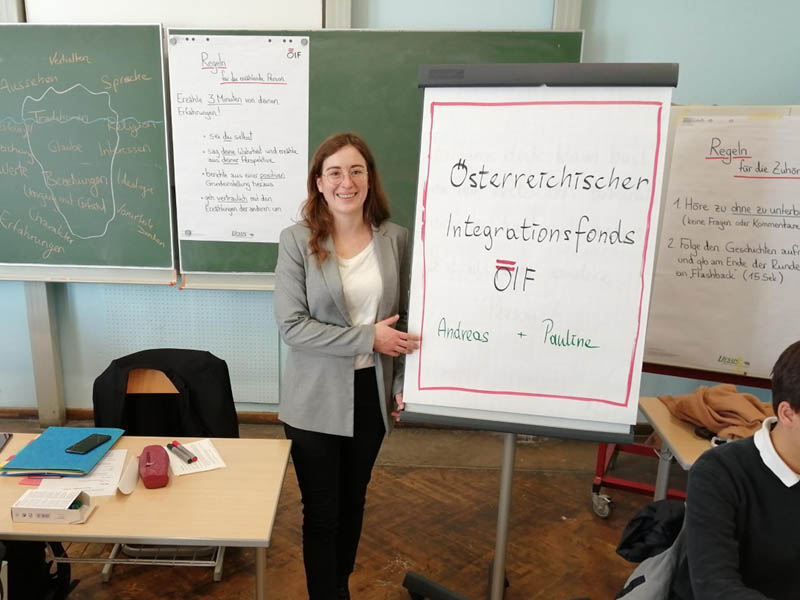 - Von Zusammen Österreich kamen vier Integrationsbotschafter/innen mit Wurzeln im Ausland an die Schule und erzählten von ihrem persönlichen Werdegang. Die anschließende Diskussion über Werte des Zusammenlebens und Miteinanders brachte einige Emotionen an die Oberfläche und ließ niemanden unberührt.