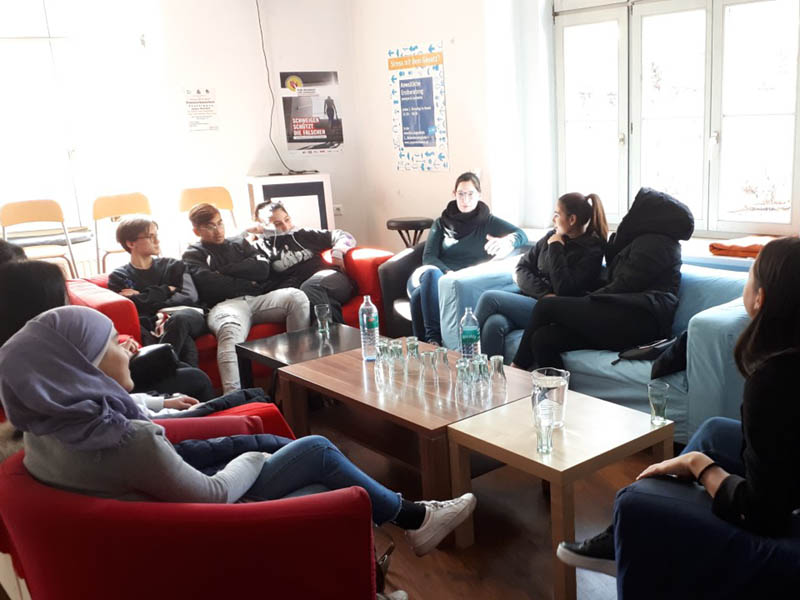 - Beim Besuch bei Streetwork, einer Organisation, die niederschwellig Jugendliche in problematischen Lebenslagen auf unterschiedlichste Weise unterstützt, bekamen Schülerinnen und Schüler einen Einblick in den vielfältigen Alltag von Streetworkern.