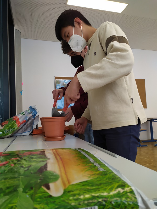 Auch als Pflanzenbuddies haben die Schüler*innen der Gruppen A und B einen tollen Zusammenhalt gezeigt. In Zweierteams suchten sich Klassenkolleg*innen gemeinsam Pflanzensamen aus, die in Töpfchen am Fensterbrett keimen sollten. Mit etwas Geduld, gutem Zuspruch und verlässlichem Einsatz der Gießkanne waren auch schon bald die ersten Keimlinge zu sehen. Die Teams kümmerten sich abwechselnd um die Jungpflanzen, bis diese schließlich groß genug waren, um in die Pflanzentröge auf dem Dach des neuen Schulgebäudes umzuziehen. Wir freuen uns schon alle auf die Blumenpracht!