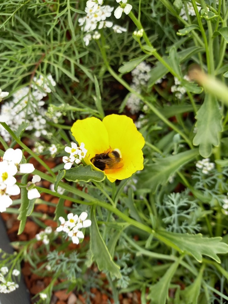 Ferienruhe 20/21 9. Juli 2021 / romangraf Die Blumen und Gemüsebeete der Schüler*innen und Lehrer*innen sind gut besucht: Insekten freuen sich über die Ferienruhe 🙂