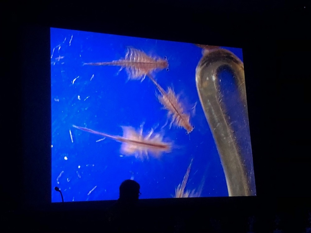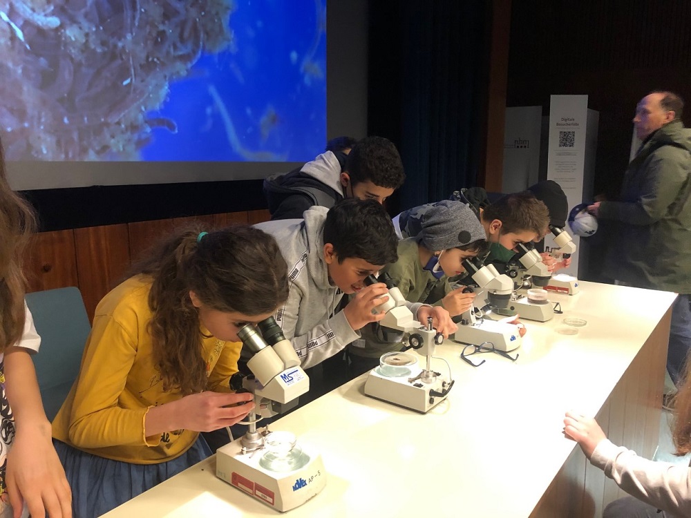 Hungrige Libellenlarven, tanzende Fadenwürmer, rasende Pantoffeltierchen: Die „DarstellerInnen“ des Mikrotheaters im Naturhistorischen Museum waren allesamt spannend zu beobachten! Per Beamer konnten wir mitverfolgen was sich unter dem Mikroskop vorne abspielte. Am Ende gab es noch die Möglichkeit die Stars der Show selbst zu mikroskopieren.