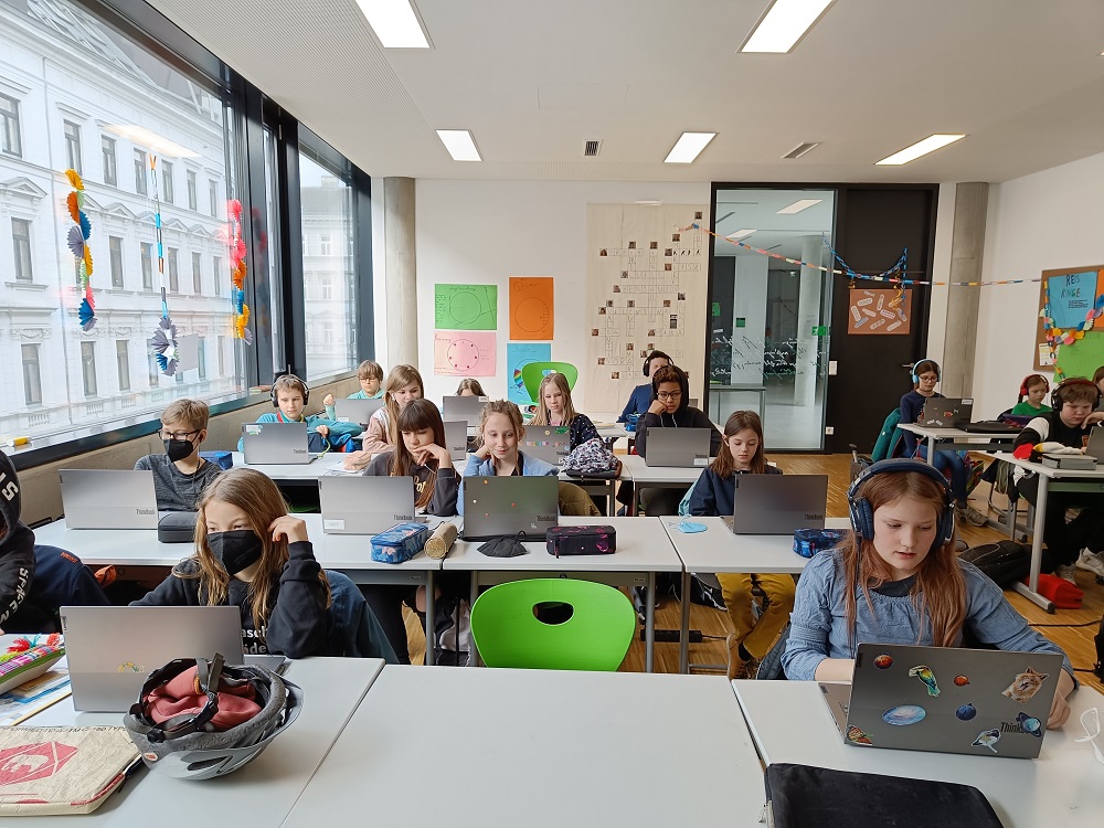 Zum Abschluss haben wir noch mit Ozobots gespielt und konnten auch selber Routen zeichnen. Ozobots sind kleine Roboter die schwarzen Linien nachfahren und mit verschiedenen Farbencodes auch nach links, nach rechts oder geradeaus fahren, sich auf dem Stand drehen oder springen können. Ganz zum Schluss haben wir als Versuchskaninchen noch Sandra und Martina Feedback gegeben was sie besser machen könnten. Es hat uns sehr gut gefallen und natürlich gab es auch noch eine Jause zwischendurch.