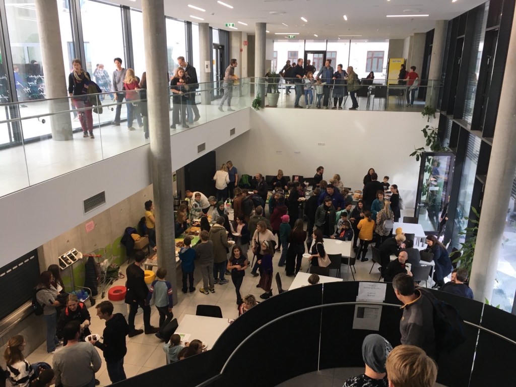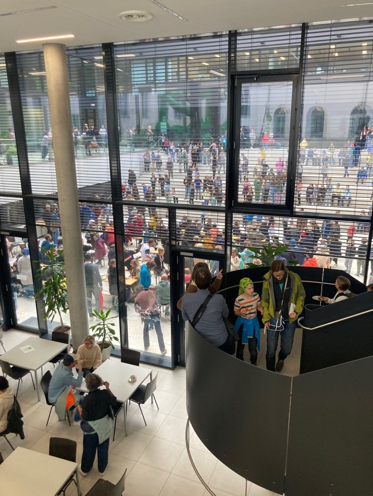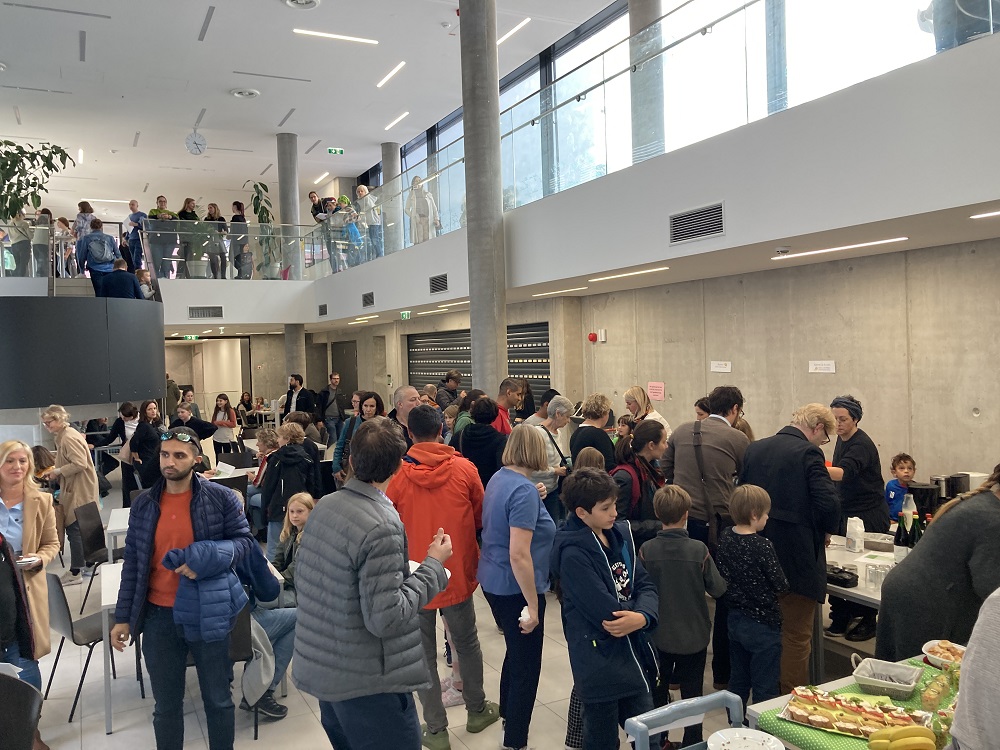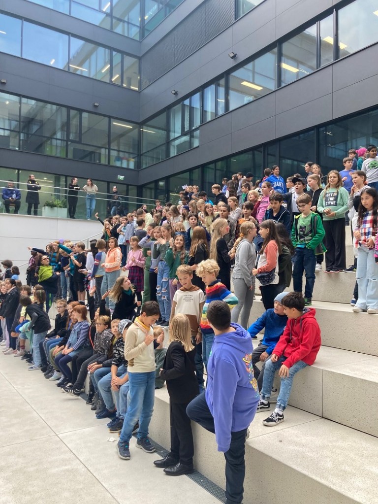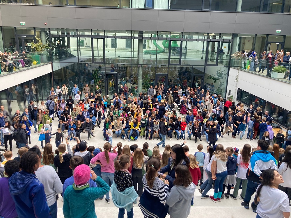 Beim Willkommensfest der 1. und 2. Klassen konnten die „neuen“ Schüler*innen ihren Eltern unser Schulhaus zeigen. Außerdem wurde gesungen, gespielt und geschminkt. Es gab eine Schulrallye, Bio-, Englisch- und Mathe-Stationen und eine Karaokebühne. Ein Buffet sorgte für die notwendige Stärkung und wurde von Eltern organisiert.