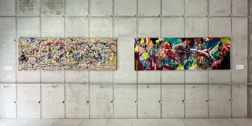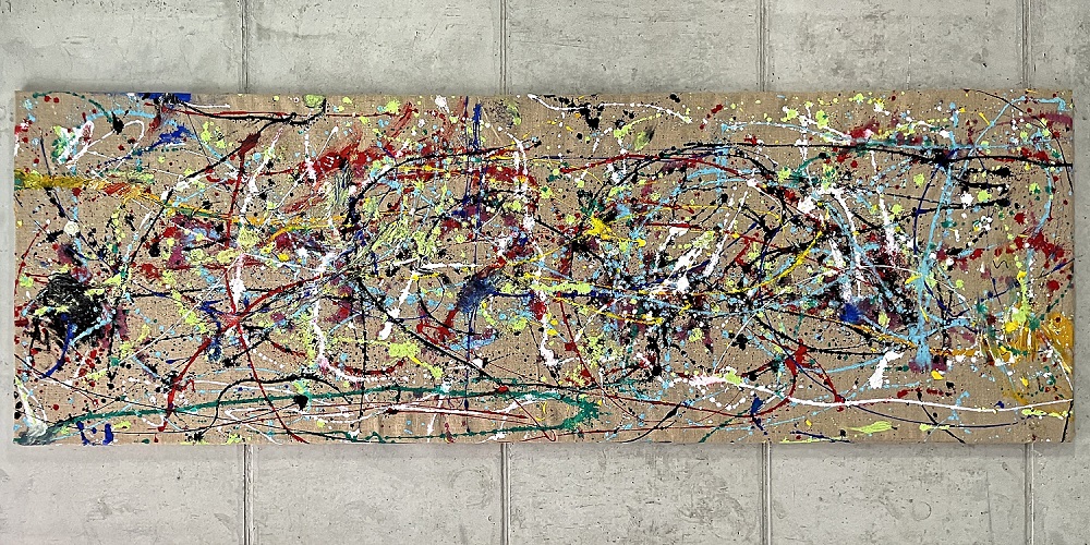 Am Ende einer intensiven theoretischen wie praktischen Auseinandersetzung mit dem Thema Abstraktion/Informel – inklusive einem Besuch der Ausstellung “Ways of Freedom” in der Albertina Modern – produzierten die Schüler*innen der Klasse 7N3 kollektiv zwei großformatige Arbeiten auf Jutegewebe: Malerei als performative Aktion in “101: Action Painting I” bzw. die gegenstandslose, flächigere Schichtung von Farbe und Form in “Sous le béton, la plage”.
