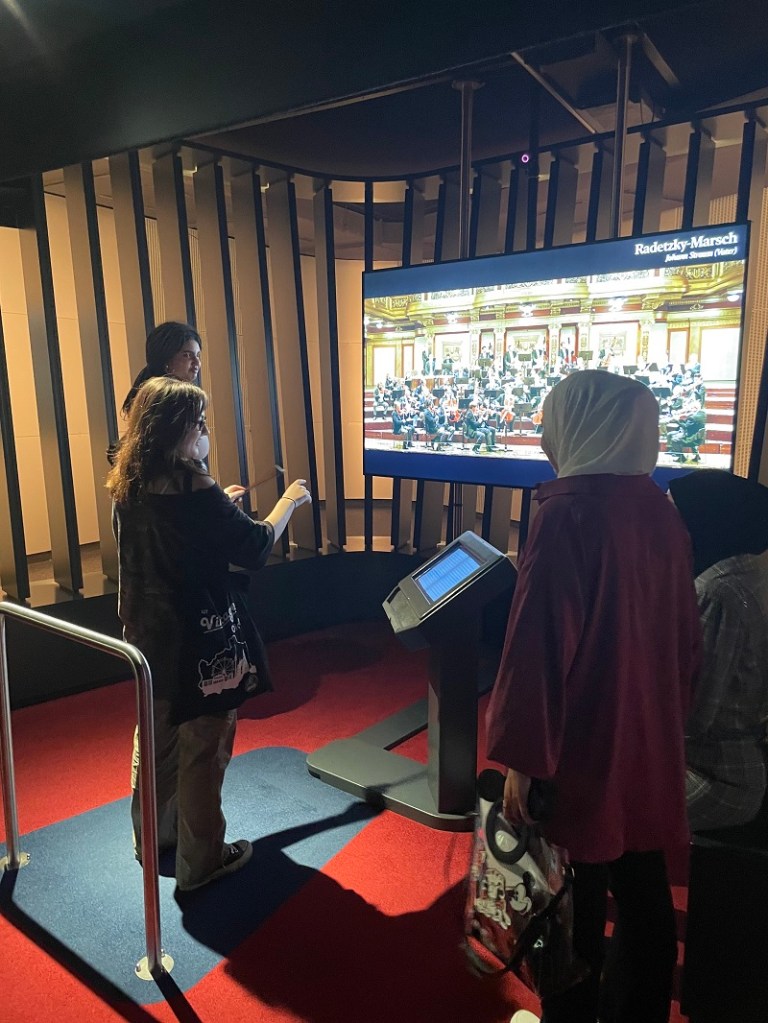 Neben einer Rätselralley durch das Museum, hatte das Haus den Schüler*innen viel Interaktives zu bieten, so wurden die Wiener Philharmoniker mit Begeisterung und viel Talent dirigiert.