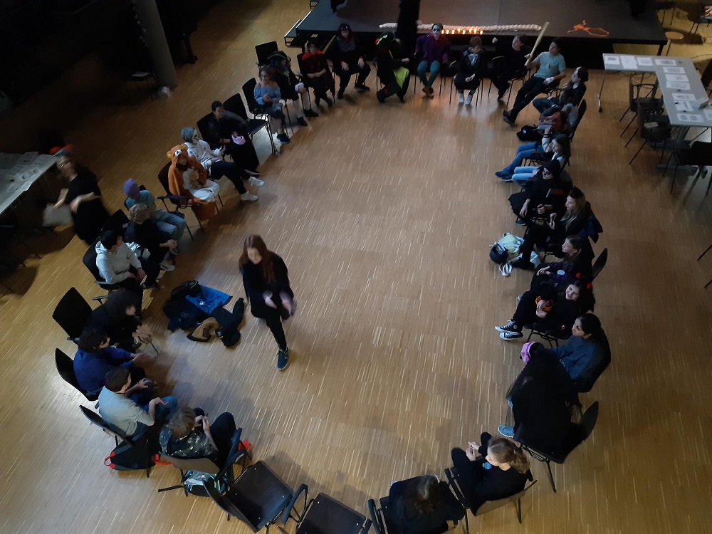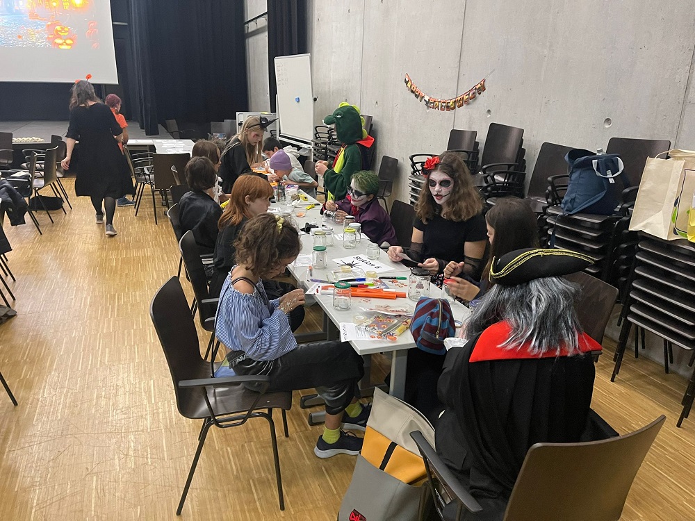 Am Abend des 25. Oktobers trieben Monster, Hexen und andere furchteinflößende Gestalten im Festsaal der Lessinggasse ihr Unwesen. Der Grund dafür war die Gruselnacht der Klassen 2A und 2E. Auf dem vielfältigen Programm standen nicht nur Wortspiele auf Deutsch und Englisch, sondern auch kreative Aufgaben, wie das Basteln einer Laterne oder das Ausmalen von Mandalas.