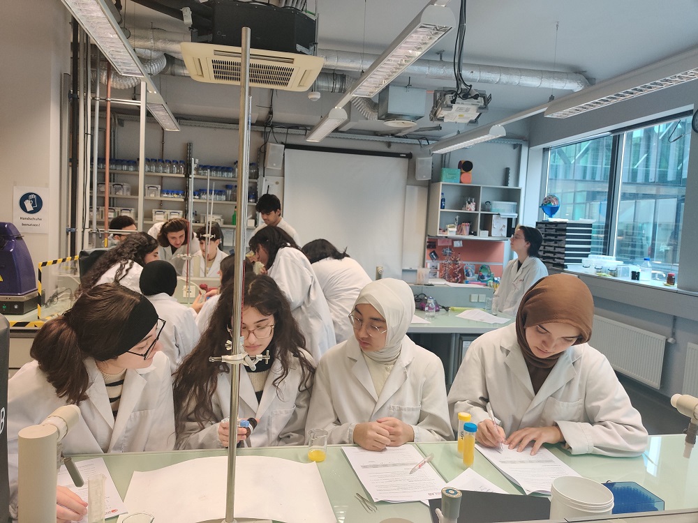 Die Schüler*innen der Klasse 8RG haben bei ihrem Besuch im Vienna Open Lab ein Vitaminpräparat auf den Gehalt von Vitamin B1 und B2 untersucht. Dabei haben sie auch einiges über Vitamine gelernt.