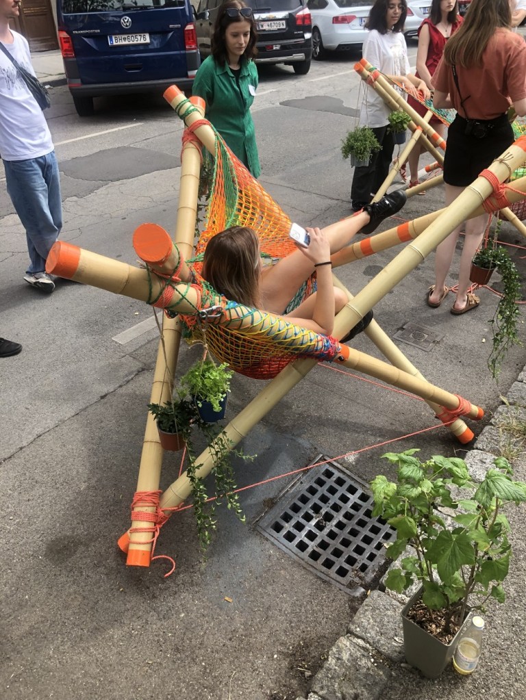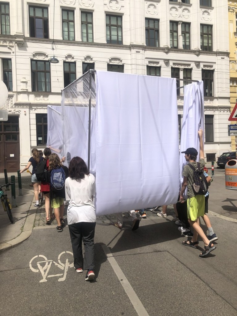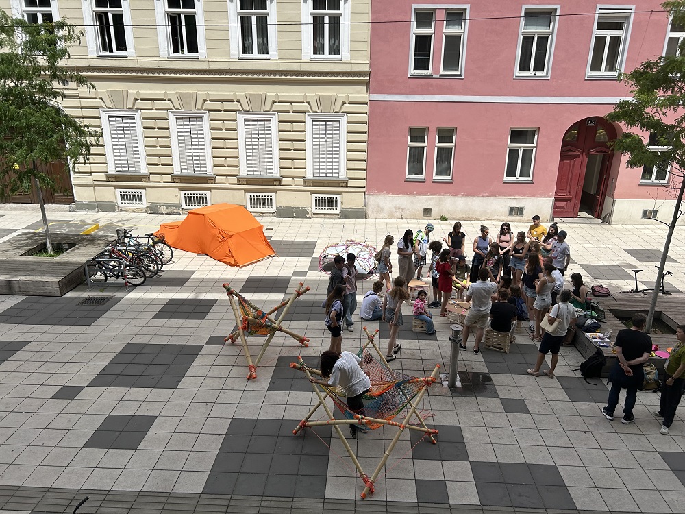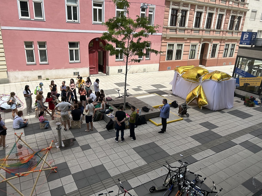 Am Ende des Schuljahrs gab es das große Endprojekt, bei dem die 4D gemeinsam mit den Architekturstudierenden im Grätzl Parkräume in spannende, kreative und abenteuerliche Schauplätze verwandelten. Die dafür aufwendig gestalteten Objekte sollen nun gegenüber des Volkertmarkts ausgestellt werden.