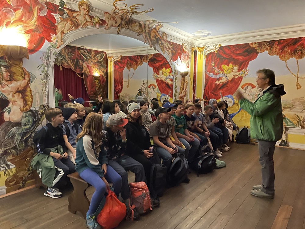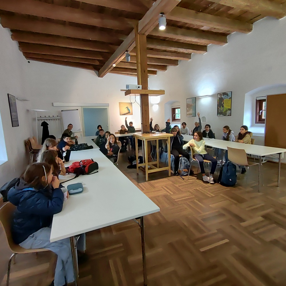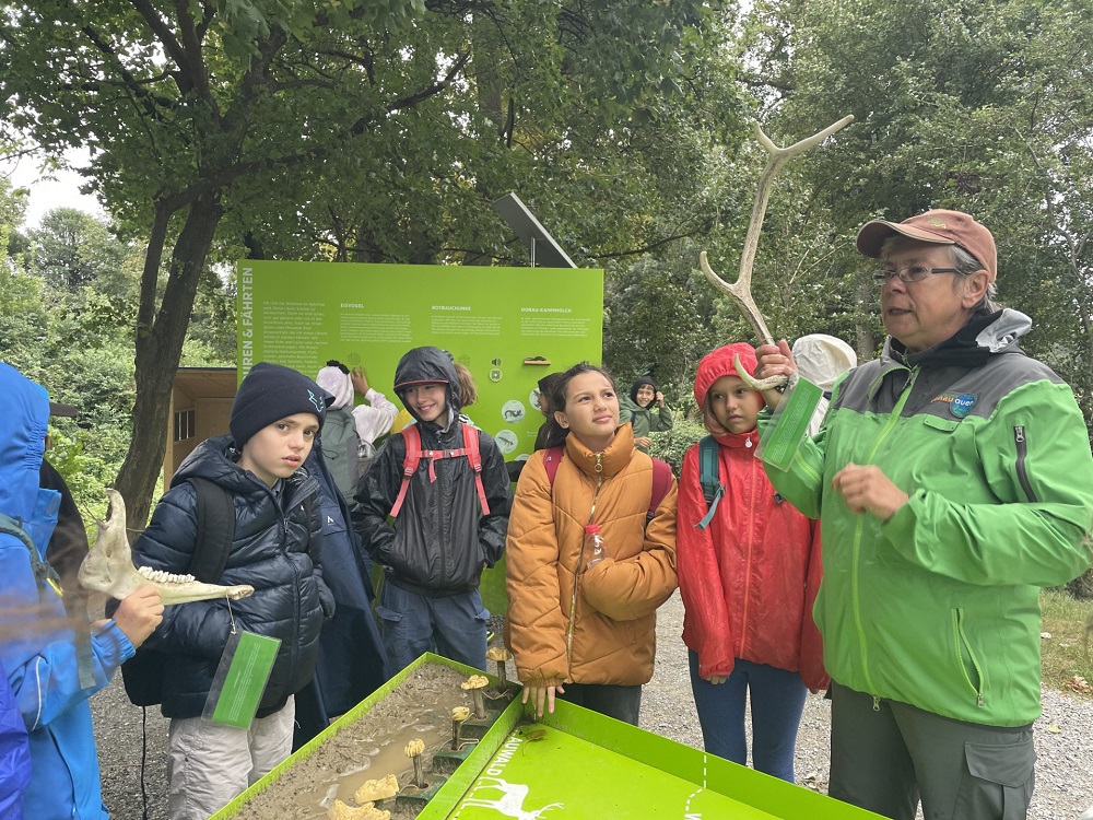 Gemeinsam besuchten alle ersten Klassen den Nationalpark Donau-Auen. Im Nationalpark-Zentrum schlossORTH lernten die Schülerinnen und Schüler einiges über verschiedene Tierarten, die auf der Schlossinsel entdeckt werden können. Zum Beispiel erfuhren sie von den Nationalparkranger*innen etwas über den Biber (man durfte einen sogar streicheln 😉), führten mit ihnen ein Theaterstück auf, besuchten im Schlossturm die brütenden Vögel und beobachteten auch Fische unter Wasser im Park (und das sogar ohne nass zu werden)!