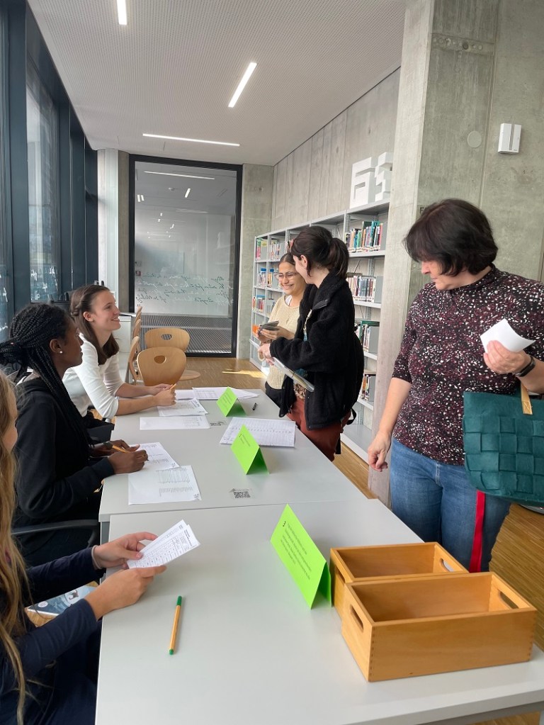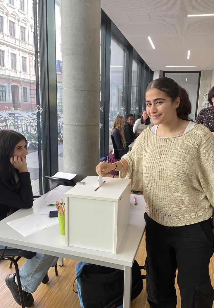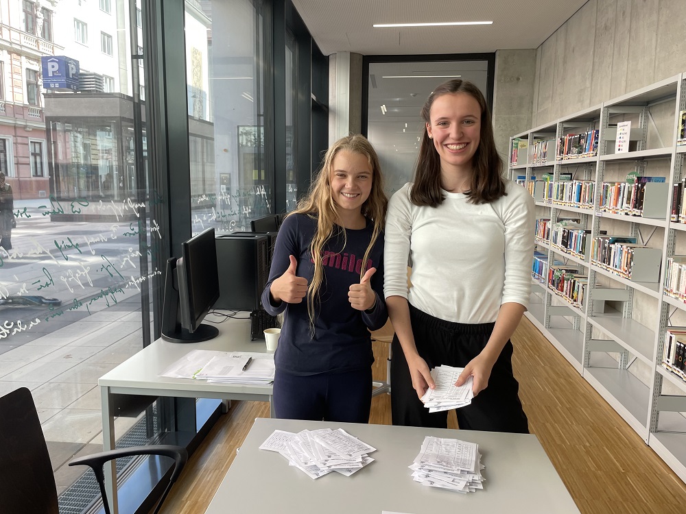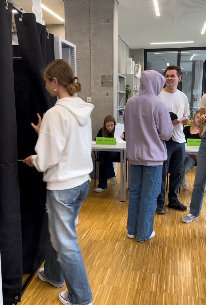 Gewählt wurde von den 7. und 8. Klassen, aber auch viele Lehrkräfte kamen, um ihre Stimme abzugeben. Die Wahlkommission wurde aus Schüler:innen der 6. Klassen gebildet, die sorgfältig Ausweise kontrollierte und die Stimmen auszählte.