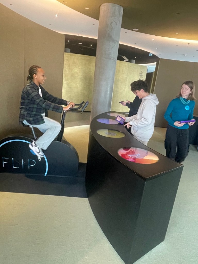 Als wir ankamen, wurden wir freundlich von zwei Mitarbeitern des Flips begrüßt, die uns bevor der Workshop begann, erklärten was ,,Flip“ eigentlich ist. Es handelt sich um ein modernes Lernzentrum, das speziell für junge Leute entwickelt wurde, um den Umgang mit Geld Kindern und Jugendlichen auf interaktive Weise näherzubringen. Die Atmosphäre war angenehm, keine Spur von einer langweiligen Bank, wie es sich viele wahrscheinlich vorgestellt hatten. Stattdessen gab es bunte Räume, „Wallets“ und Stationen, an denen wir selbst Fragen beantworten und Spiele spielen konnten.