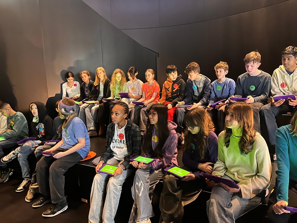 Wir wurden in zwei Gruppen aufgeteilt und bekamen Tablets, mit denen wir Aufgaben lösen konnten und Entscheidungen treffen mussten. Am meisten Spaß hatte ich bei der Station, wo wir im Tresorraum waren, das war nämlich sehr interessant. Außerdem gab es ein Quiz, bei dem wir Punkte sammeln konnten – das hat voll viel Spaß gemacht.