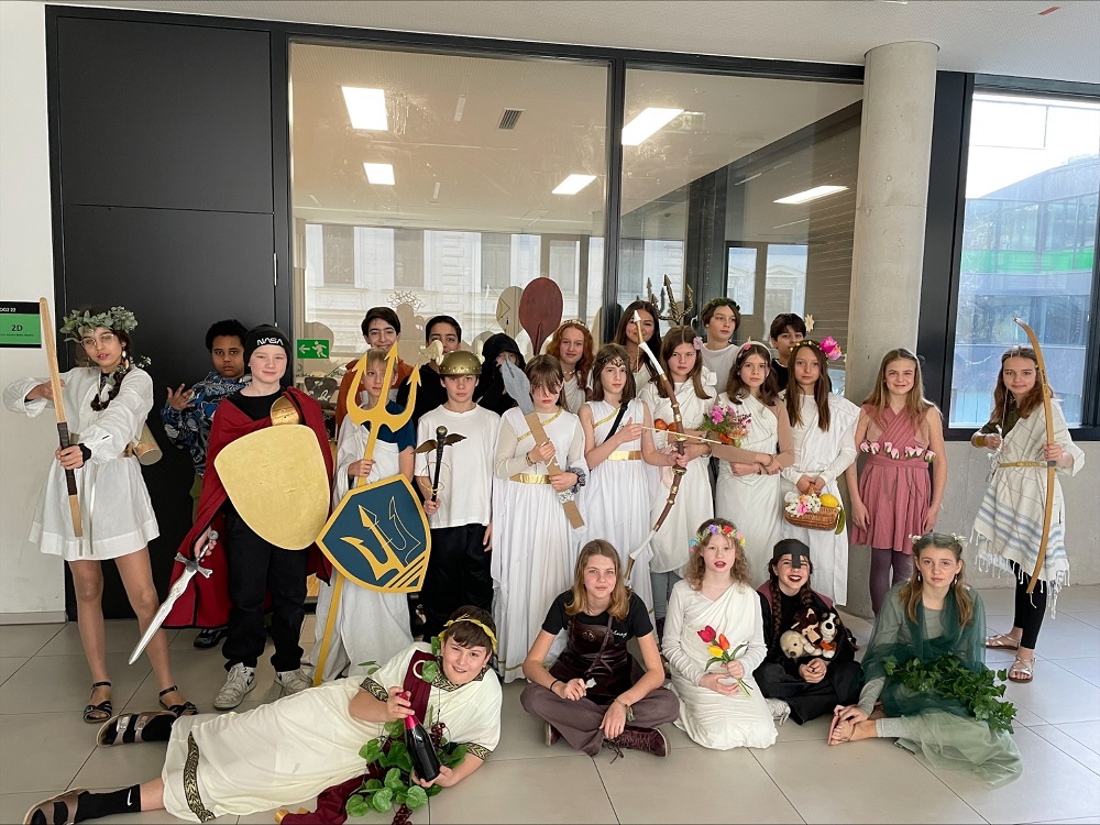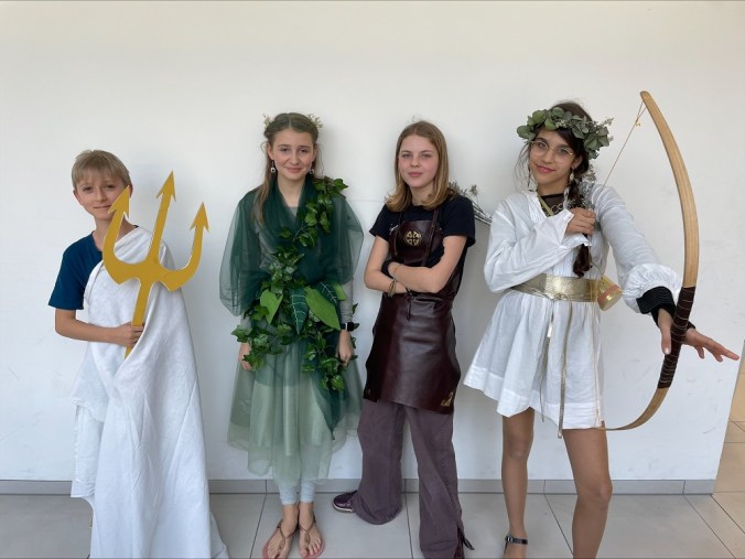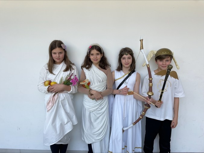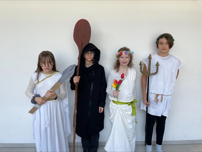 2D Fasching 24/25 5. März 2025 / romangraf Die Klasse 2D hat das aktuelle Thema aus dem Deutschunterricht – die griechische Mythologie – als Motto für den Fasching gewählt und mit ihren Detailkenntnissen perfekt umgesetzt 🙂 Poseidon (Anton), Daphne (Eny), Hephaistos (Naëlle) und Artemis (Antonia) Athene (Lotta), Charon (Hanna), Chloris (Agnes), Poseidon (Luis) Apollon (Mila), Demeter (Livia), Hades & Zerberus (Amalia), Persephone (Emina) Demeter (Paula), Persephone (Marie), Artemis (Isabella), Hermes (Max) Aphrodite (Johanna & Amber), Hades (Juri) und Dionysos (Nico)