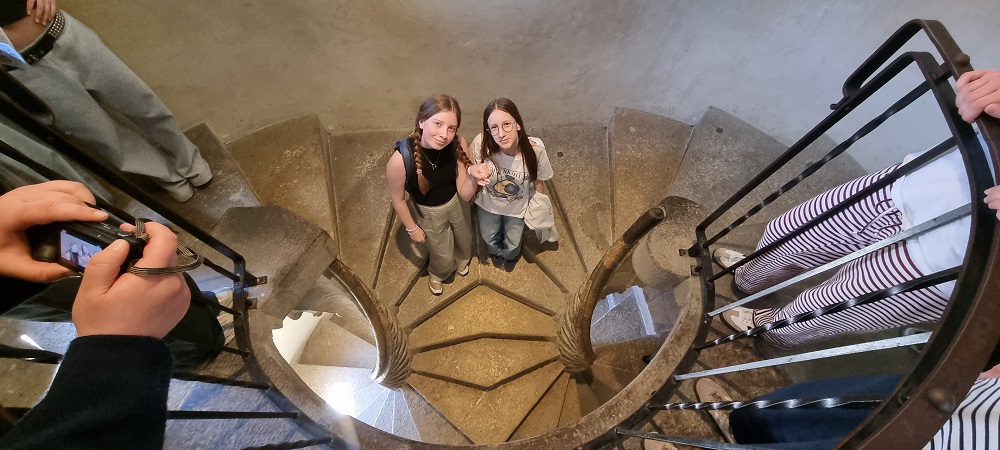 Unsere Fitness stellten wir unter Beweis, als wir elegant die scheinbar endlosen Stufen auf den Schlossberg erklommen. Zur Belohnung: ein atemberaubender Blick vom Uhrturm über die Stadt! Der Rückweg war nichts für schwache Nerven – über die Kopfschmerzen verursachende Rutsche ging’s rasant bergab.