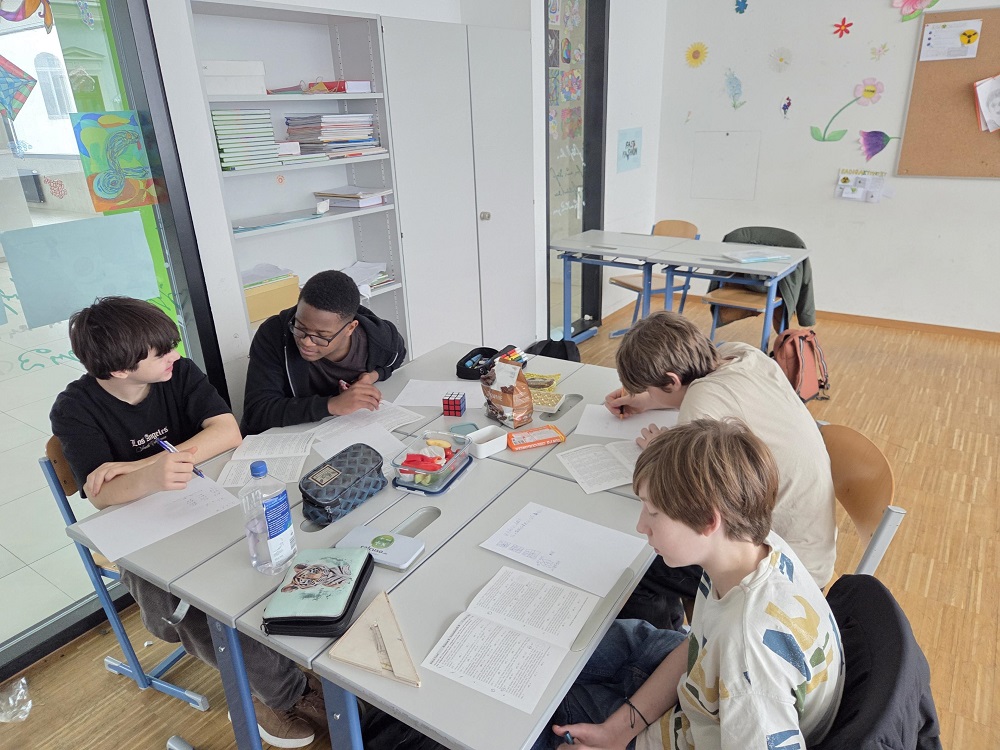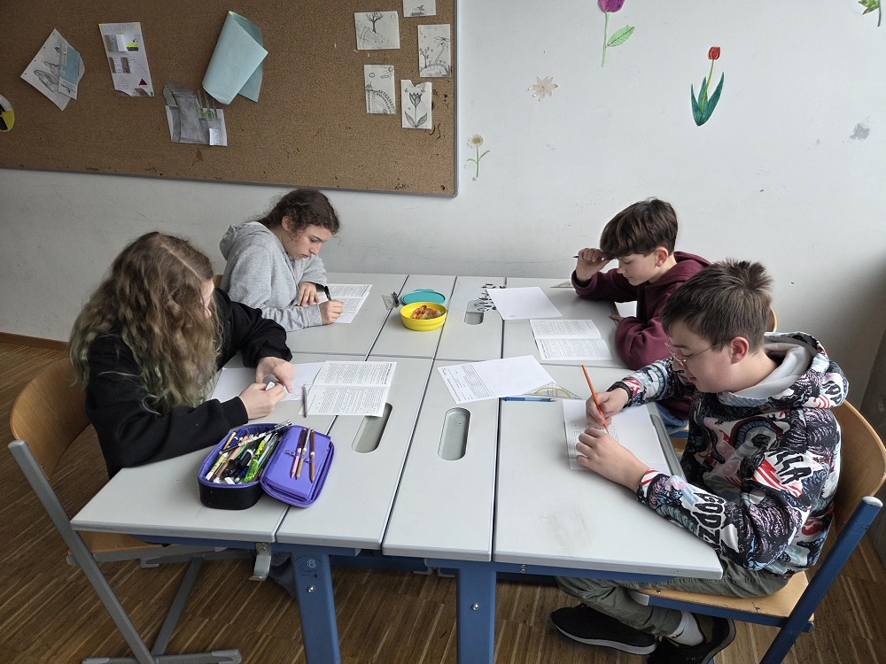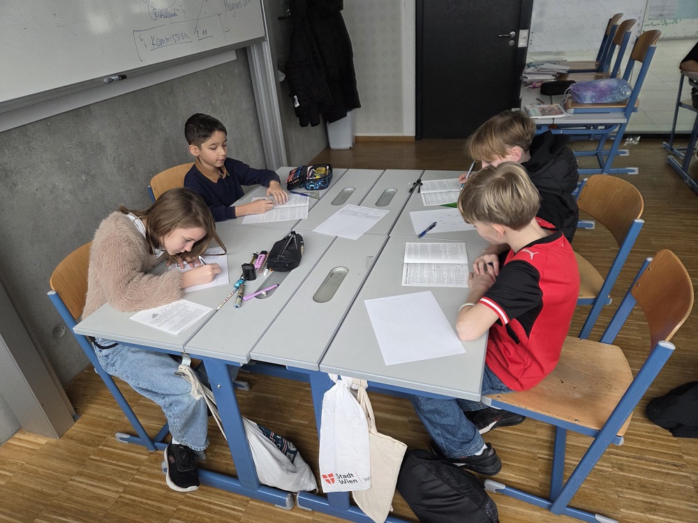 In drei Viererteams – aus der 1., 3. (mit Verstärkung aus der 2ten) und 4. Klasse – hatten unsere Mathematik-Talente 60 Minuten Zeit, um gemeinsam 14 knifflige Aufgaben zu lösen. Das Besondere am Bolyai-Wettbewerb: Teamwork zählt! Gemeinsames Problemlösen, Diskussion verschiedener Lösungswege und kreatives Denken sind hier gefragt.