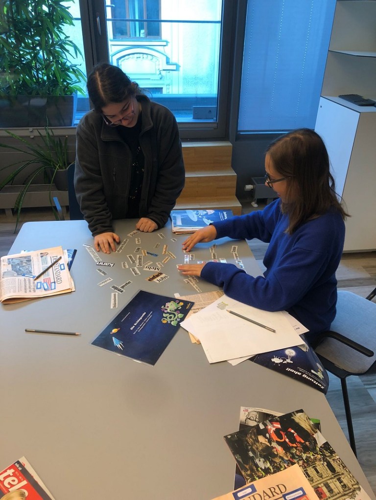 Ebrar hat den Bunte Blumen Kindergarten in der Floridsdorfer Hauptstraße besucht und Rudolf Puls 4 TV im 3. Bezirk. Maya und Clara wählten für die drei Tage zwei Buchhandlungen: die feministische Buchhandlung ChickLit in der Kleeblattgasse und die Grätzlbuchhandlung im 13. Bezirk. Ricca verbrachte die Zeit im Büro X Design im 1. Bezirk. Zu dem Besuchszeitpunkt war sie gerade damit beschäftigt, Bilder aus einem Magazin für einen Web-Design-Workshop auszuschneiden.