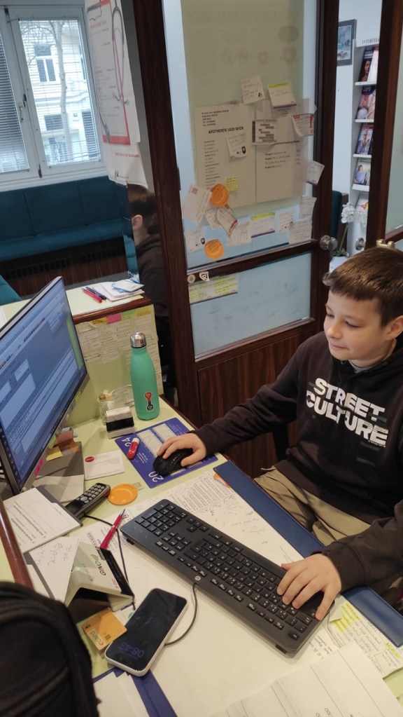 Lucas half bei MVC Motors in Simmering, Sava beim IT Service Helferline in der Josefstädter Straße, Kenan bei E.C.E Armaturen in der Taborstraße und Ida in der Humanitas-Apotheke. Raphael schnupperte bei Spar Gourmet und Emma berichtete, dass sie beim Theater der Jugend in der Neubaugasse auf der Hebebühne Lichter für die kommende Aufführung (Pünktchen und Anton) installierte.