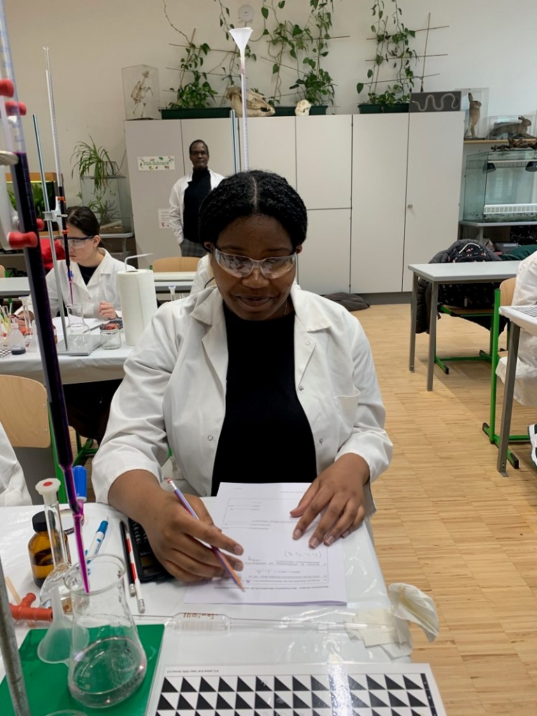 Drei Stunden lang wurde am Vormittag beim Theorieteil eifrig gerechnet, um chemische Aufgabenstellungen rund um Pigmente, Kaffee-Inhaltsstoffe, organische Synthesen oder physikalikalische Chemie zu lösen.