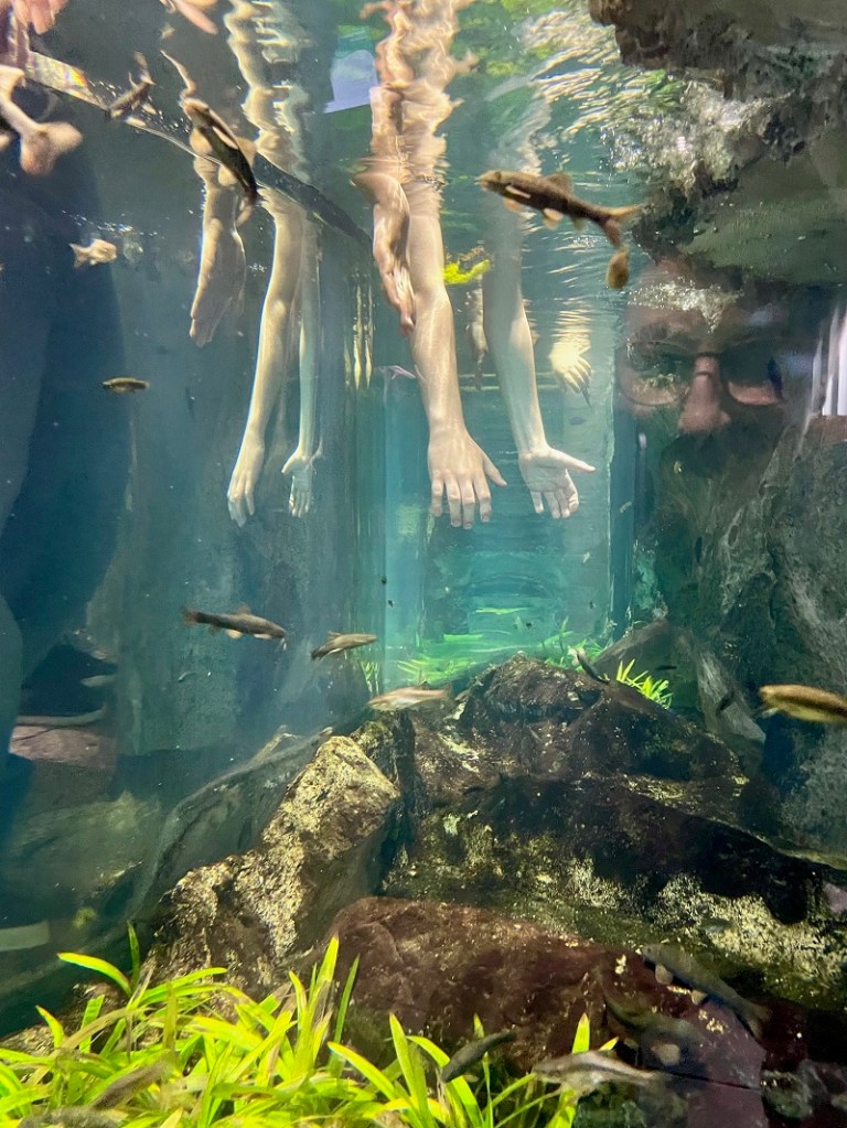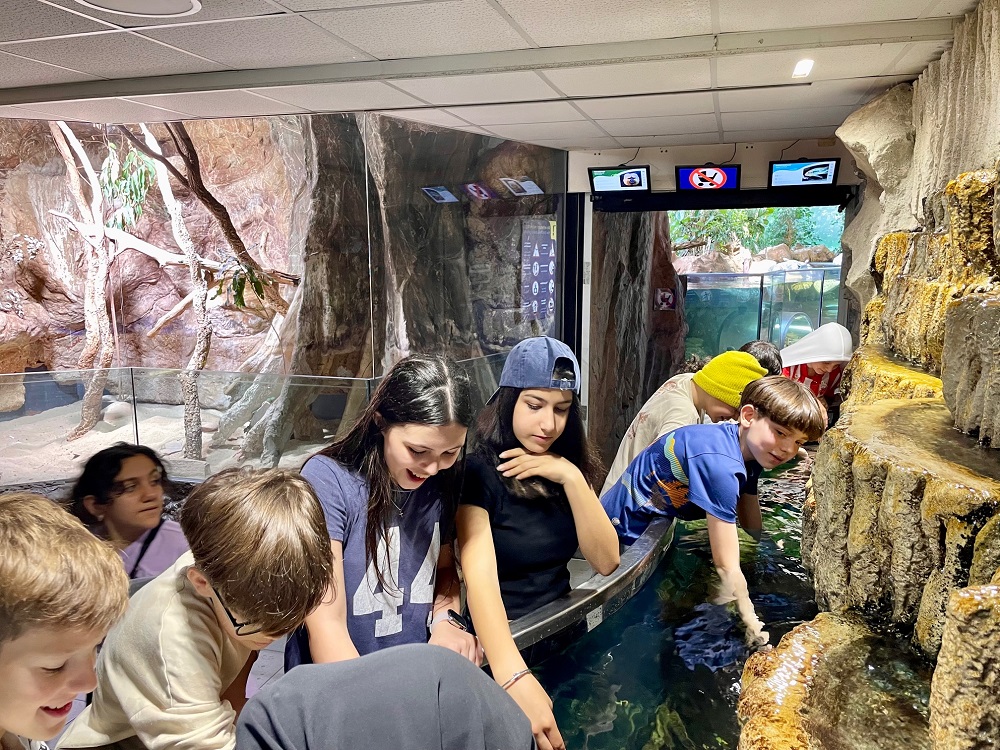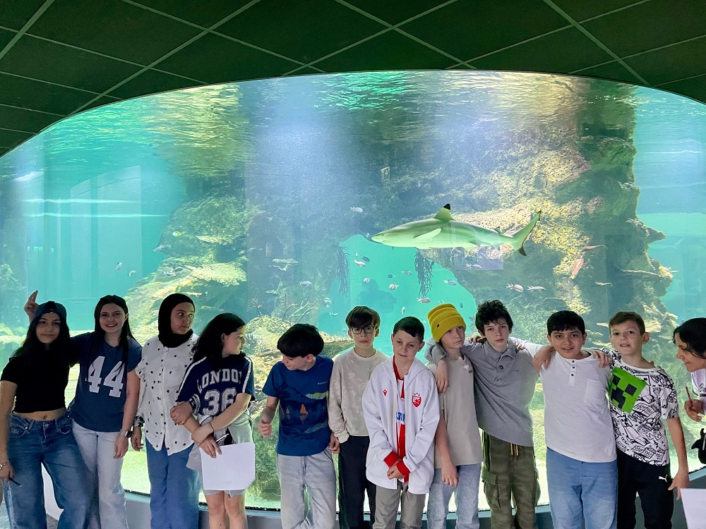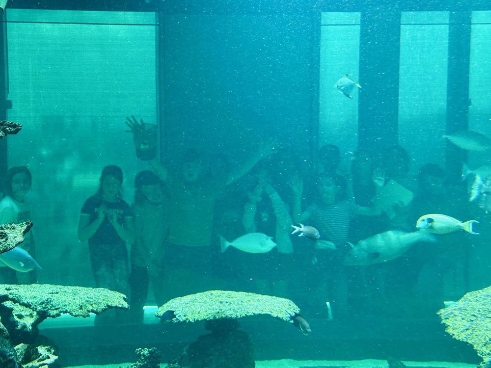 Passend zu unserem Klassenmotto ´Unterwasserklasse`, war der Besuch im Haus des Meeres für uns ein Pflichtausflug. Mit einer Schnitzelarbeit im Gepäck, erkundeten wir in Gruppen die vielfältige Welt der Tiere zu Wasser, aber auch zu Land. Am besten gefiel es uns die Kois zu streicheln und uns von den Knabberfischen kitzeln zu lassen. Obwohl uns der Besuch dort sehr gefallen hat, mussten wir uns schlussendlich wieder von den vielen faszinierenden Tieren verabschieden.