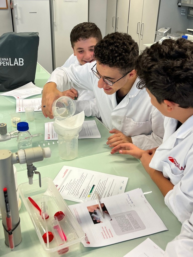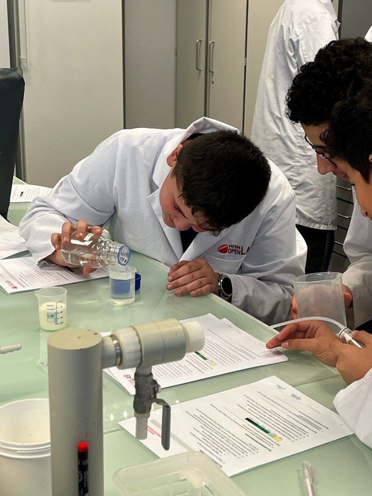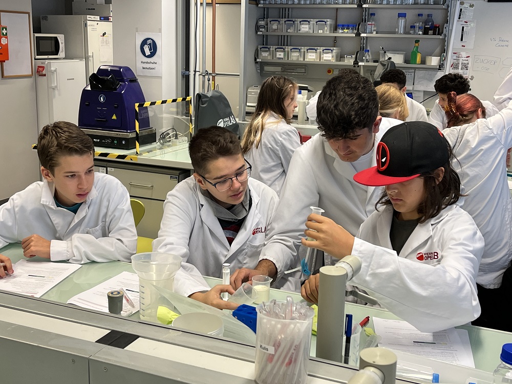 Die Schüler*innen der Klasse 8RG haben bei ihrem Besuch im Vienna Open Lab ein Vitaminpräparat auf den Gehalt von Vitamin B1 und B2 untersucht. Dabei haben sie auch einiges über Vitamine gelernt.