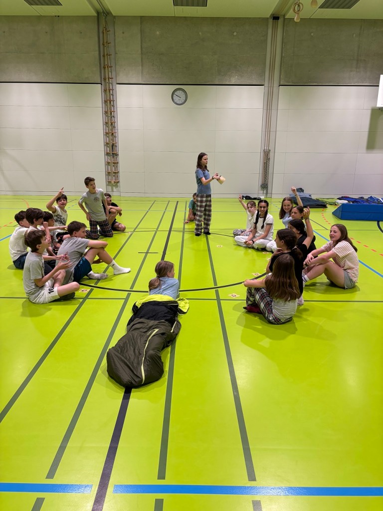 Zum Abschluss der 2. Klasse wünschte sich die 2A eine besondere Aktion: eine Übernachtung in der Schule. Den Auftakt bildete eine spannende Schatzsuche durch das menschenleere Schulhaus, bei der knifflige Rätsel gelöst werden mussten. Anschließend ging es mit Ballspielen im Hof weiter, gefolgt von einer Runde Werwolf im dunklen Turnsaal. Zur Stärkung gab es eine große Portion Pizza – ein gelungener Ausklang des Schuljahres!