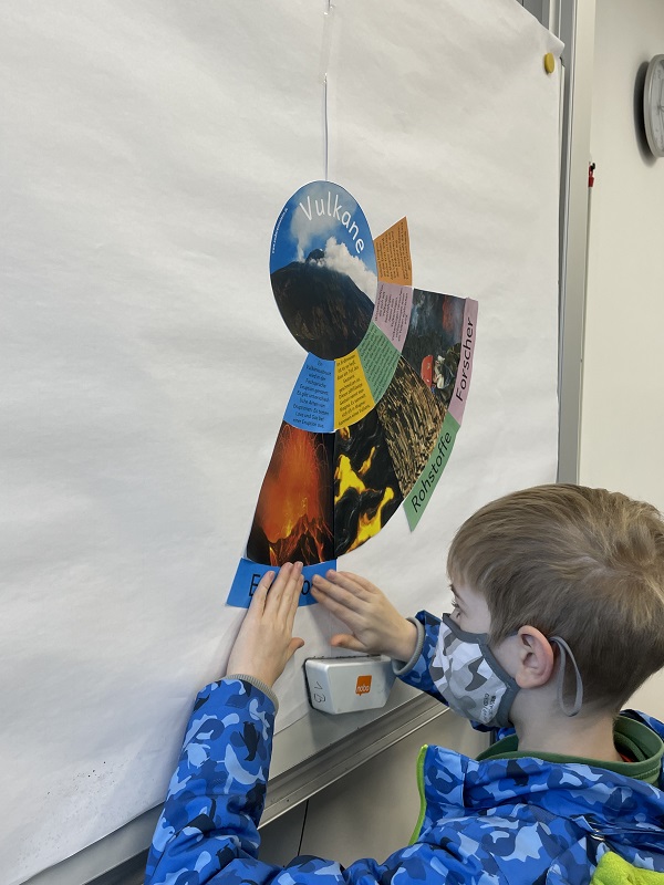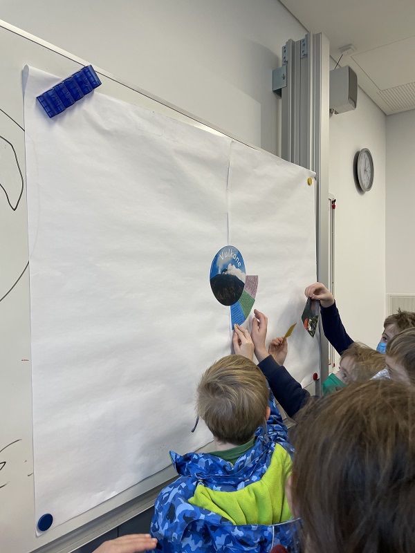 Der Abschluss unseres Vulkanprojektes bildete ein Legekreis. Nachdem alle einen Teil des Legekreises, ein Bild oder einen Text bekommen haben mussten die SchülerInnen immer drei Teile, die zusammengehören, finden. Die Teamarbeit der 1B hat sehr gut funktioniert, wie an dem gemeinsamen Abschlussfoto ersichtlich ist.