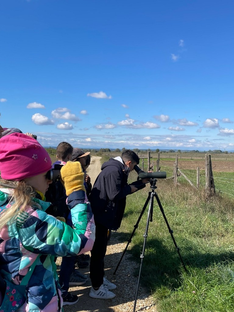 Am Nationalparkhaus angekommen spielten wir ein lustiges Spiel zum Aufwärmen. In einem Rollenspiel als Vogelkind und Vogelmutter mussten sich die Kinder anhand ihrer Stimmen finden. Danach ging es, ausgestattet mit Ferngläsern, weiter ins Nationalparkgelände. Dort konnten verschiedene Tiere, Pflanzen und die Salzlacken erspäht und beobachtet werden.