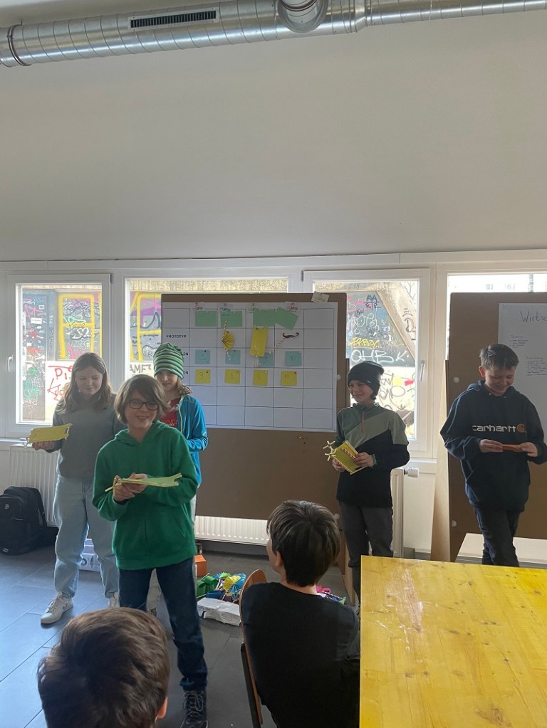 Am Dienstag dem 29.1.24 waren wir, die Klasse 1A im DOCK des Kinderbüros der Universität Wien. Dort haben wir über Wirtschaft gelernt. Wir wurden in verschiedene Firmen zugeteilt. Dort haben wir gelernt wie man ein Produkt herstellt. Als ersten Schritt mussten wir einen Prototyp herstellen. Das ist der erste Entwurf eines Produktes. Anschließend haben wir in unseren Gruppen das Produkt mehrfach hergestellt. Der Workshop war sehr interessant und wir hatten sehr viel Spaß dabei . (Text: Ella, 1A)