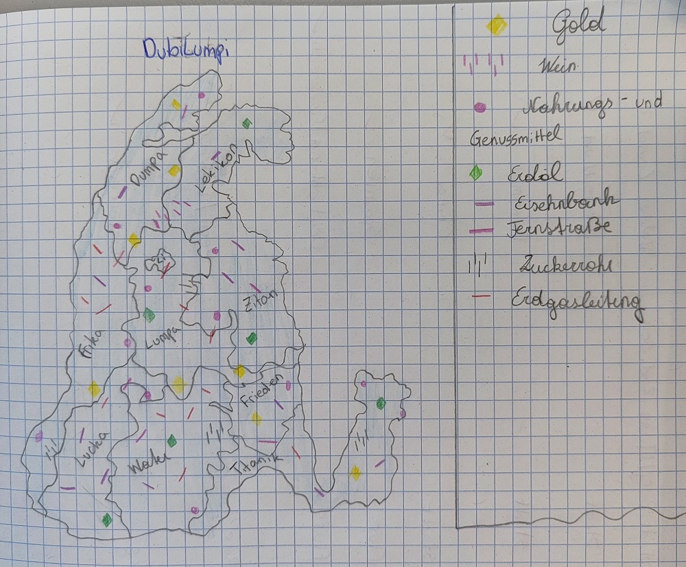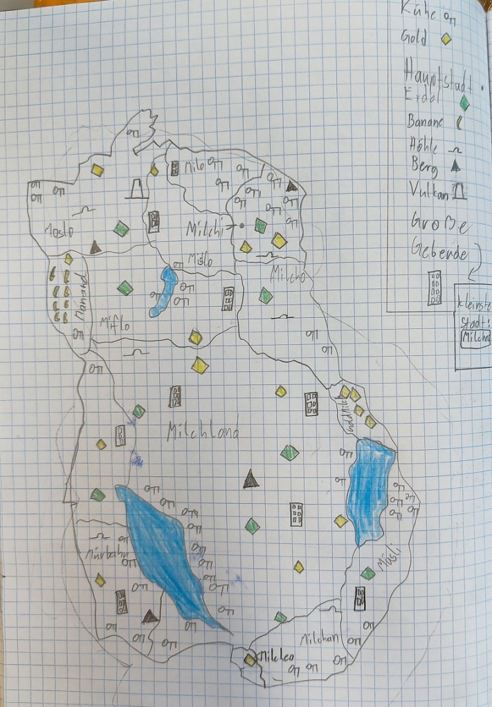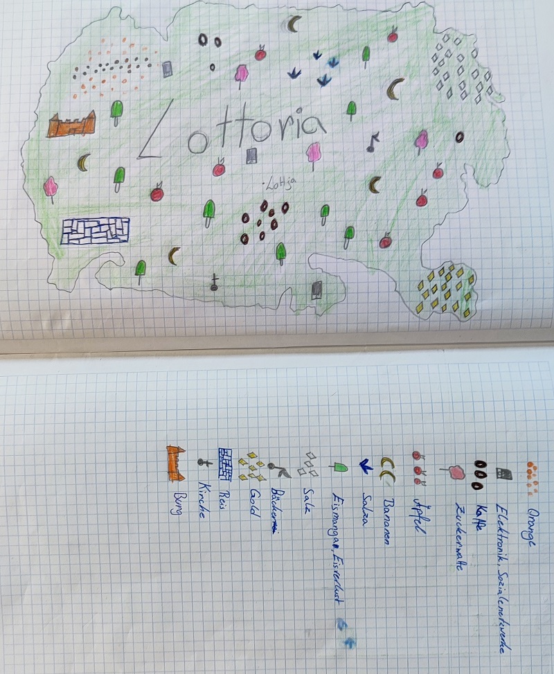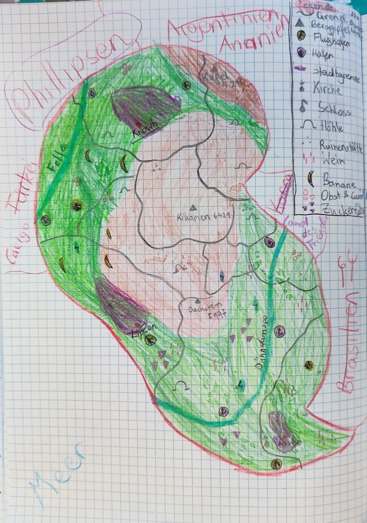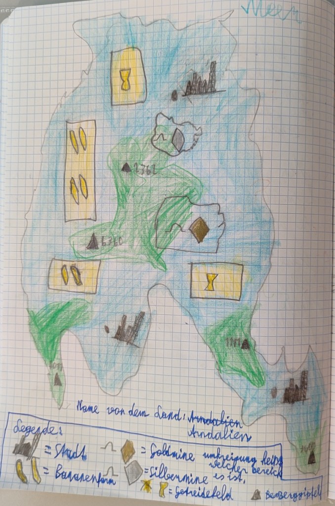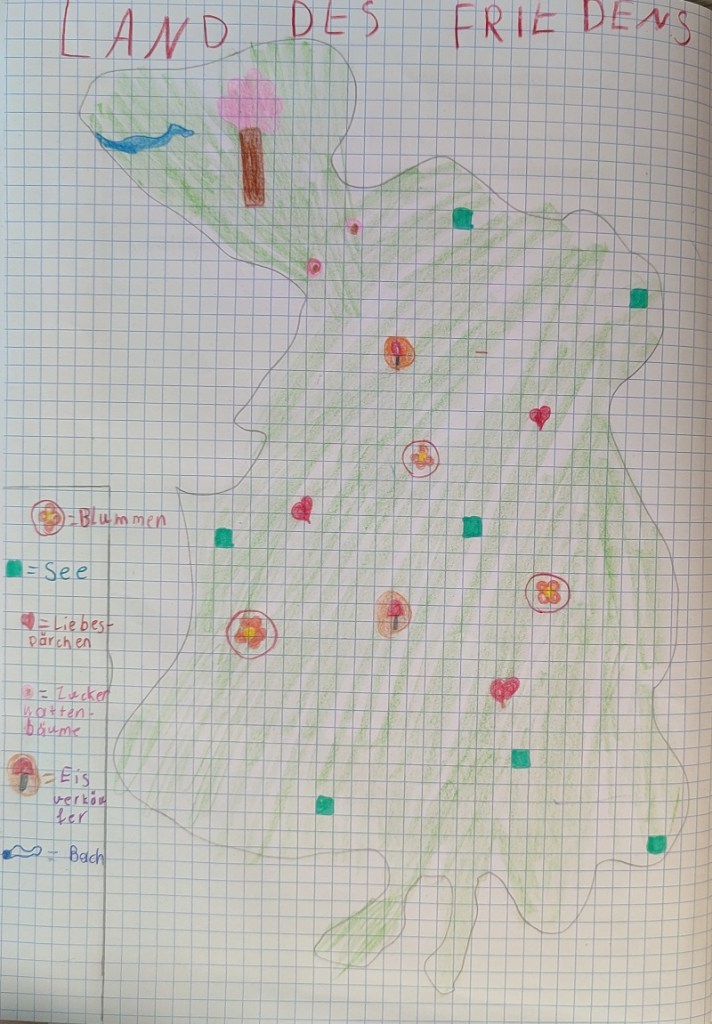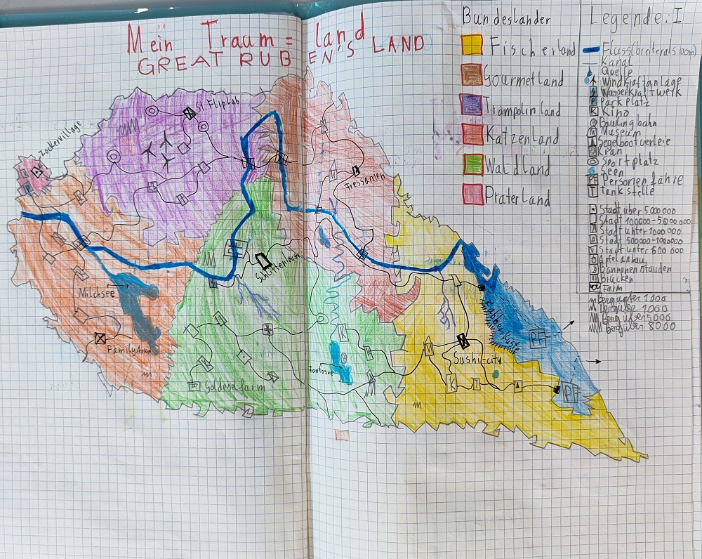 Nachdem sich die Schüler*innen der 1B mit den wesentlichen Aspekten von Kartendarstellungen im Geographieunterricht beschäftigt hatten, gab es die Aufgabe, eine eigene ‚Traumland‘-Karte zu erstellen und die dargestellten Elemente in einer Legende festzuhalten. Dabei sind einige tolle, kreative Bilder entstanden.
