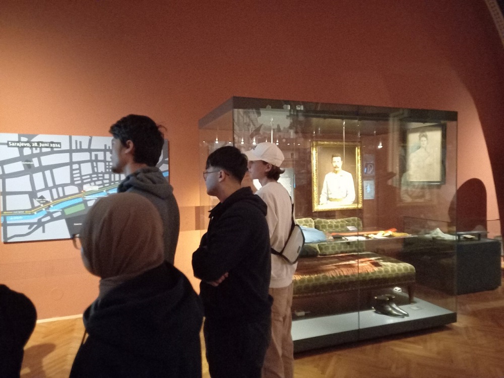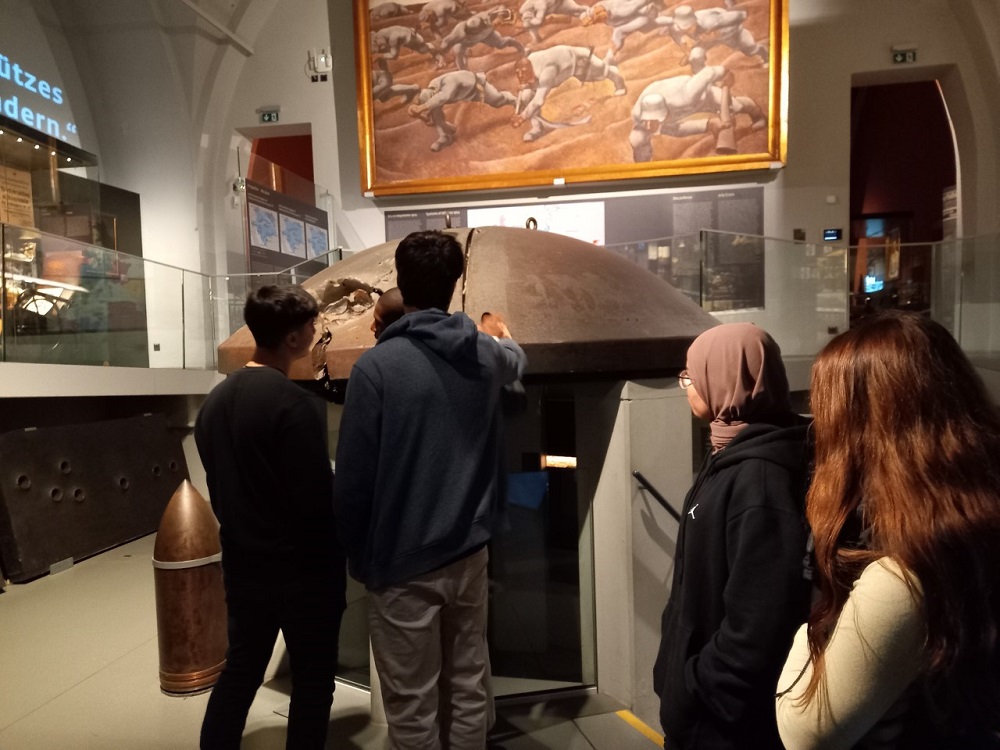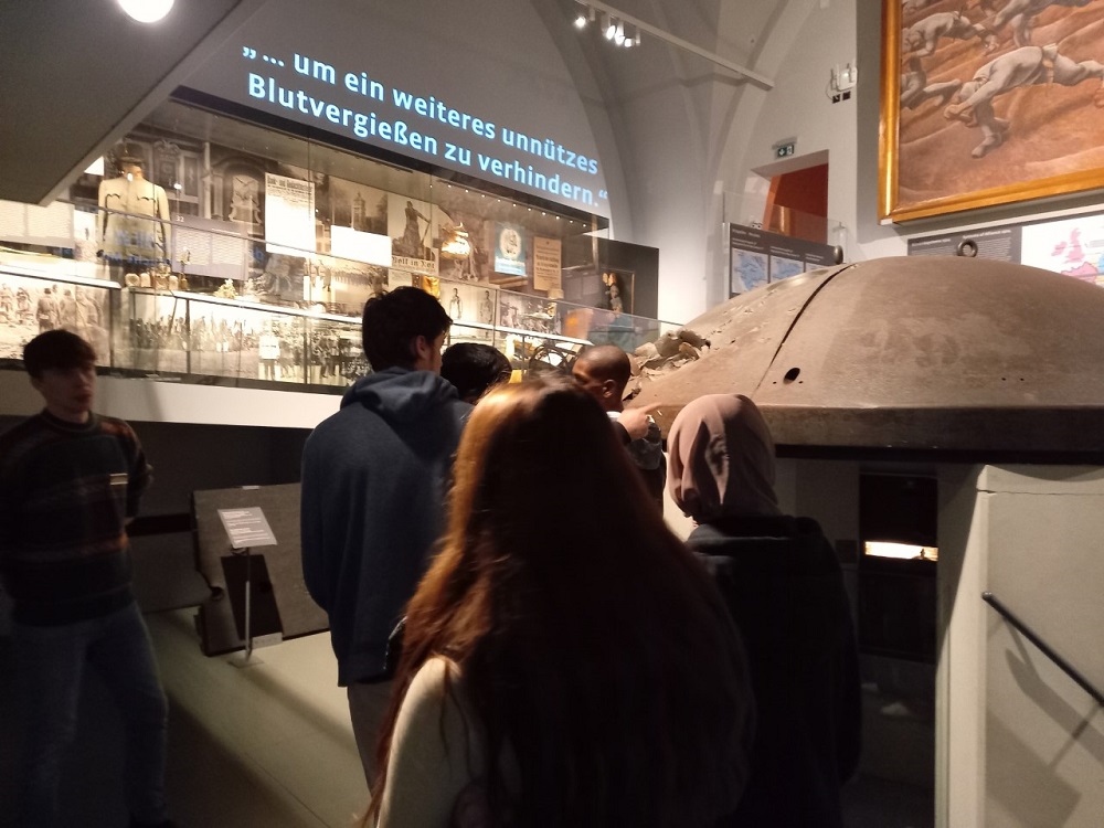 Im Heeresgeschichtlichen Museum führten zwei Kulturvermittler die Interessierten durch die Ausstellung zur Urkatastrophe des 20. Jahrhunderts. Die Auswirkungen des 1. Weltkrieges hat ihnen verdeutlicht, dass Kriege ins Museum gehören, so wie der Schriftzug über den Eingang des Museums schon hinweist.
