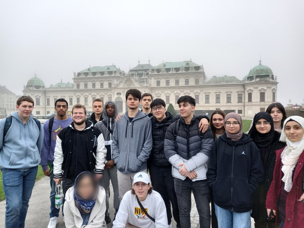 Bei ihrem Ausflug betrachtete die 7N3 das Belvedere von Außen, wobei manche Schüler*innen nach dem Lehrausgang die Gelegenheit nutzten, auf Eigeninitiative den Kuss von Klimt zu sehen. Trotz Nebels konnte die Klasse wie einst Prinz Eugen von Savoyen einen unvergesslichen Blick auf die Stadt werfen.