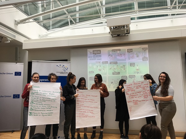 In Kleingruppen, die von engagierten EYP-Freiwilligen betreut wurden, diskutierten sie aktuelle politische Themen auf Englisch, arbeiteten Resolutionen aus und präsentierten ihre Ergebnisse im Plenum.