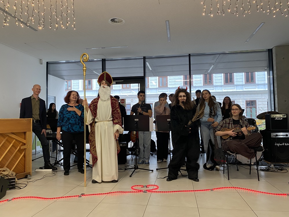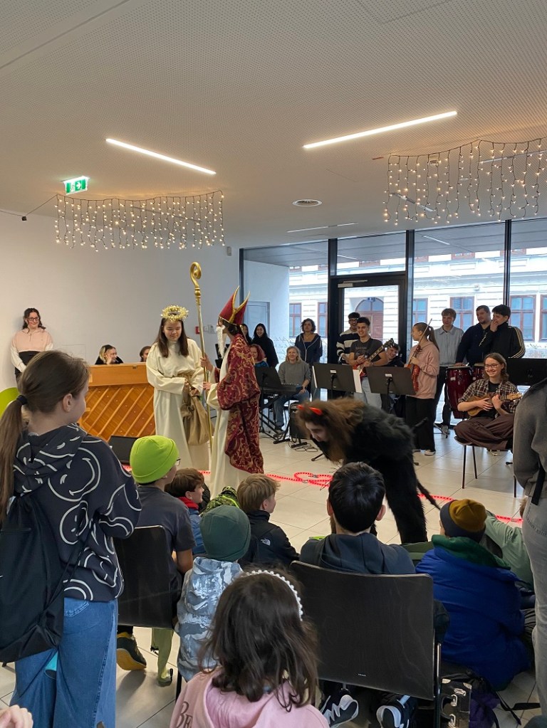 Auch der Nikolaus, ein Krampus und sogar ein Engerl haben ein Lied für uns gesungen und anschliessend die braven Kinder mit Süßigkeiten belohnt 🙂