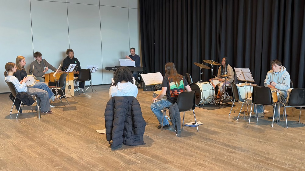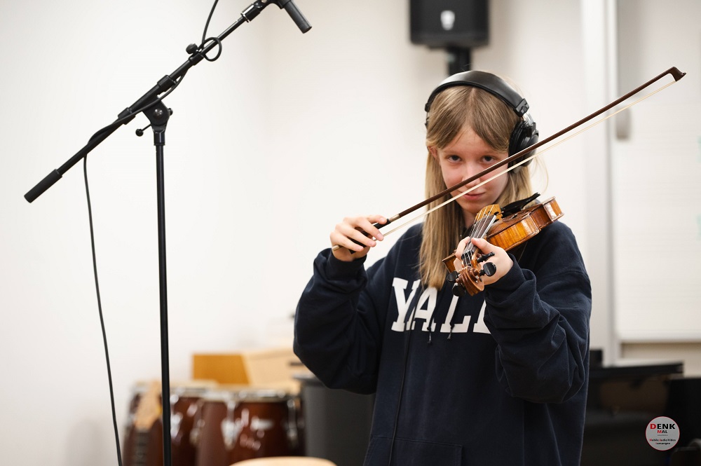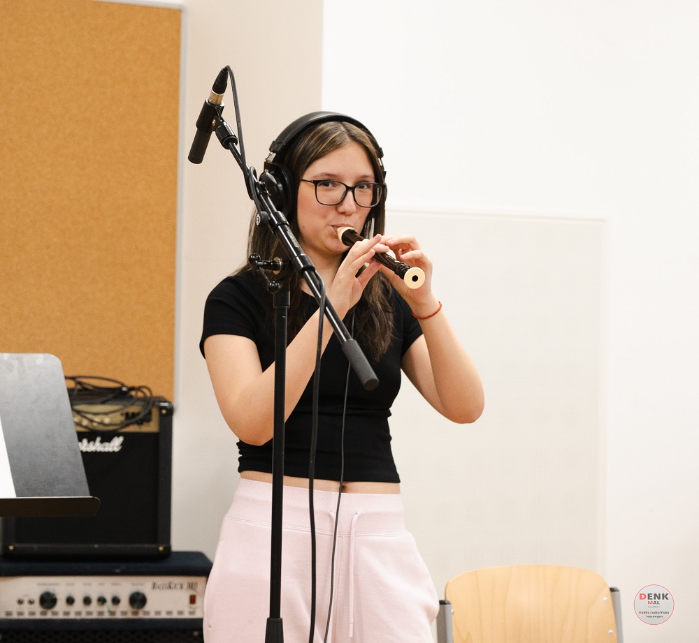 Die Musik- und die Kunst-Lernwerkstatt produzieren dabei gemeinsam ein Musikvideo. Die Studioaufnahmen für die Musik und auch ein paar Videoaufnahmen haben bereits stattgefunden: