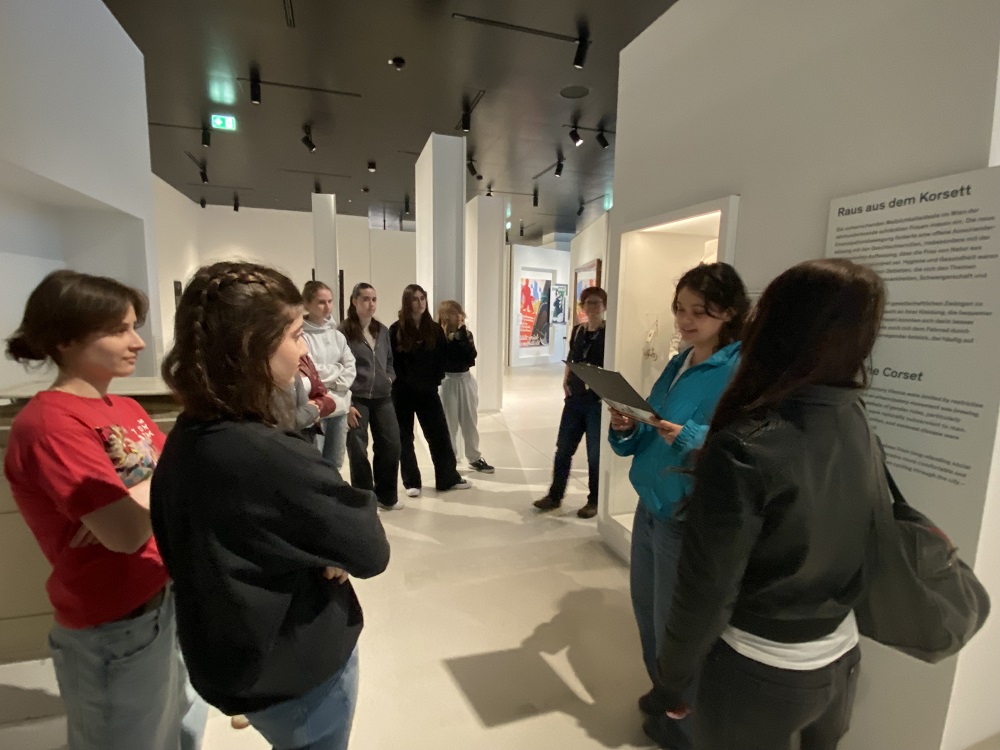 Im Wien Museum erlebte die Ethik-Gruppe der Klassen 7K und 7RG eine spannende Führung inklusive Workshop. Das Thema lautete: „Alles nur Fassade? Wien um 1900“ – zu dieser Zeit wurde Wien zur prunkvollen Kulturmetropole. Nach jahrzehntelanger Arbeit war die Ringstraße mit ihren Luxusboulevards fertig, reiche Bürger*innen lebten nun in ihren noblen Palais und stolzierten an Staatsoper, Parlament, Rathaus, Universität etc. vorbei. Doch wer schuftete dafür in der Wienerberger Ziegelfabrik? Wie lebten die 100.000 Dienstmädchen? Und was hatte ein gewisser Alfred Adler damit zu tun?
