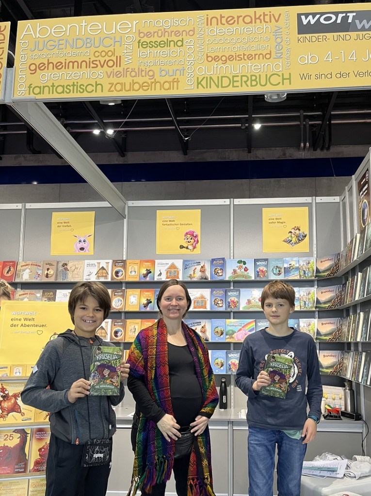 Zu Beginn absolvierten die Schüler*innen eine Buchmessen-Rallye, bei der sie Stände aufspüren, interessante Titel finden und eigene Lesevorlieben reflektieren sollten. Die Aufgaben führten sie quer durch die Halle und regten außerdem Gespräche mit Verlagsmitarbeiterinnen darüber an, was ein Buch ansprechend macht. Auch das Kinderbuch von Klassenvorständin Prof. Denscher war auf der Messe ausgestellt, was die Erkundungen besonders spannend machte.