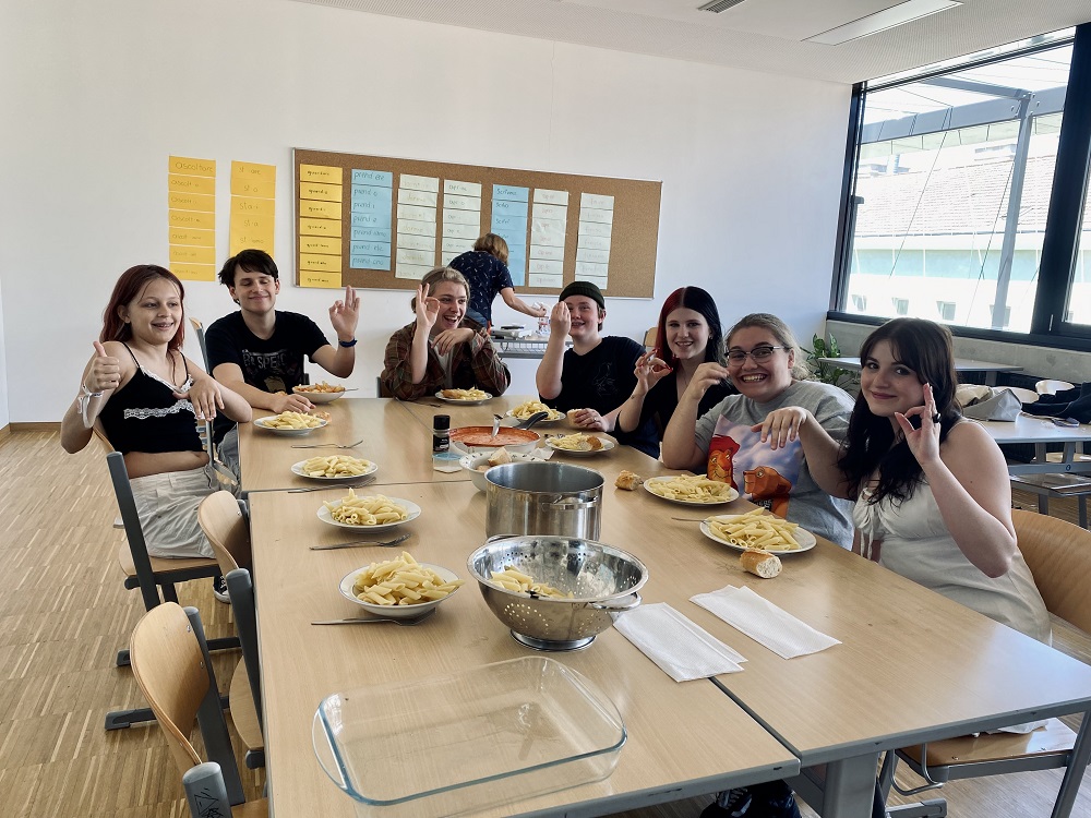 Es hat den Schüler*innen viel Spaß gemacht und war eine tolle Abwechslung. Die Pasta ist sehr gut gelungenen und nach der Stunde waren alle satt und glücklich 🙂