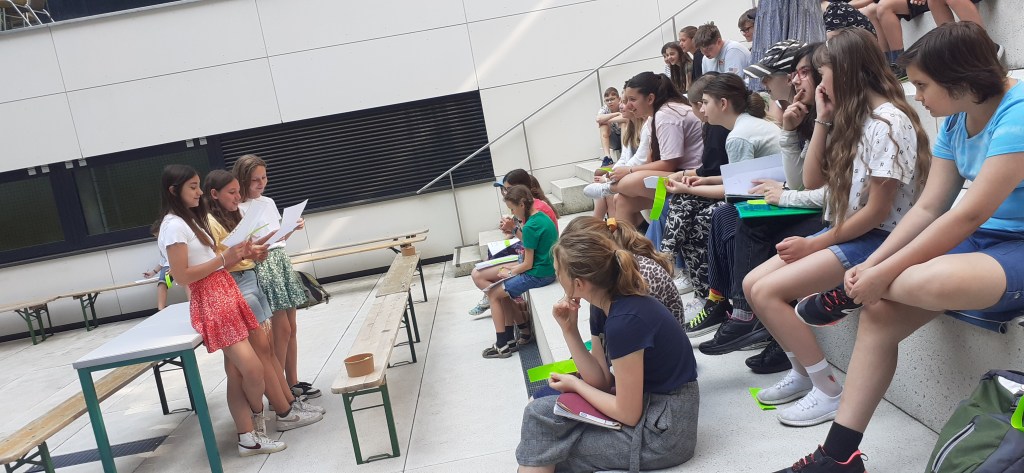 Im Rahmen des Deutschunterrichts haben die Schüler*innen der Klassen 2C und 2E eigenständig Beiträge zu einem Poetry Slam verfasst. Die Texte waren besonders kreativ, lustig, manchmal ernst und in jedem Fall unterhaltsam. Die glücklichen Gewinner*innen erhielten eine Medaille und natürlich einen gebührenden Applaus.