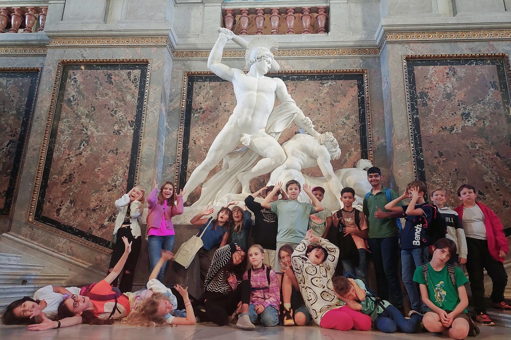 Auf der Suche nach griechischen Helden*innen und Chimären begab sich die 2D in die Gemäldegalerie und die Antikensammlung. Dort traf sie u.a. auf Theseus beim Kampf gegen einen Kentauren und auf Daphne, die sich, von Apollon verfolgt, in einen Baum verwandeln lässt. In den labyrintischen Gängen des KHM begegneten den Schüler*innen aber auch Charakterköpfe und chinesische Drachen.