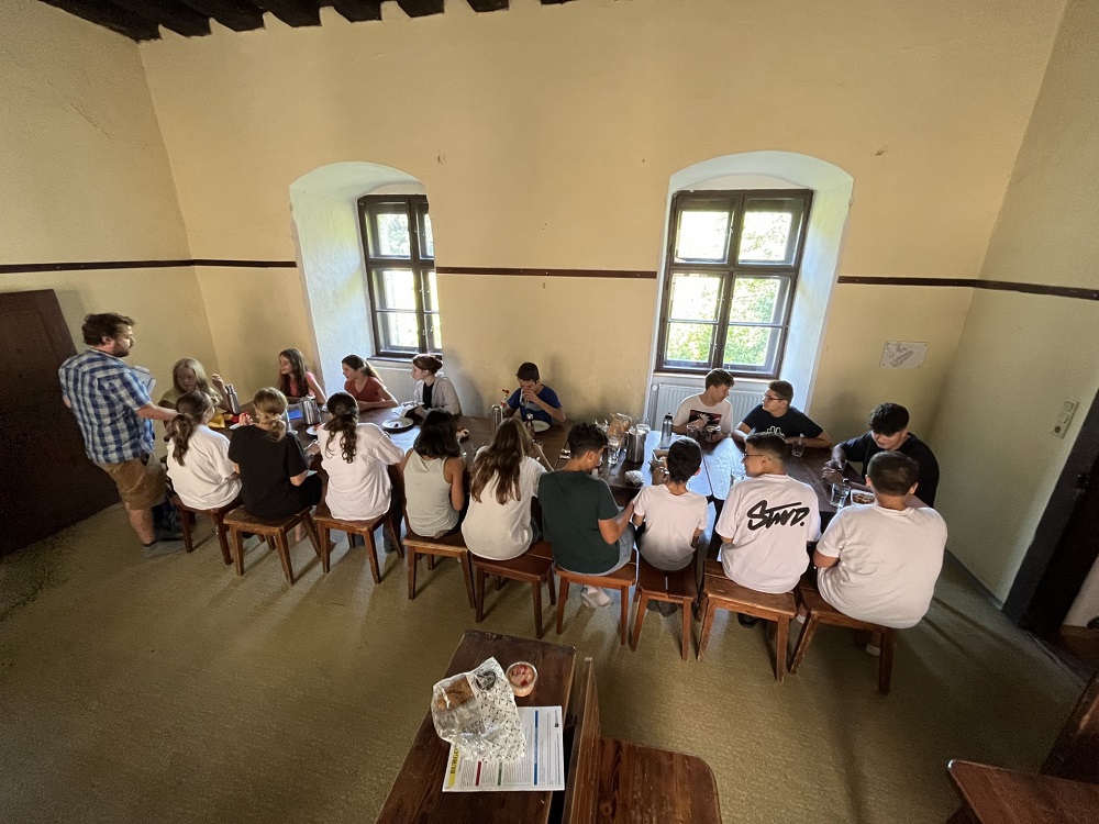In der zweiten Schulwoche hat die 4a mit Frau Prof. Bachner und Herrn Prof. Schütz zwei Tage auf der Burg Wildegg im Wienerwald verbracht. Nach einer kurzen Anreise und einem gemeinsamen Mittagessen haben wir am Nachmittag auf einer Lichtung um Wald Sketches geprobt und gespielt. Am Abend hat ein sehr engagiertes Küchenteam gekocht und wir konnten alle leckere Pasta mit Salat essen. Bei Dunkelheit sind wir zur Feuerstelle marschiert um Marshmallows zu grillen. Die Nacht war für manche von uns recht kurz, trotzdem ist der Vormittag total schnell vergangen und wir mussten die Burg viel zu früh wieder verlassen. Zwischendurch haben wir viele Runden Werwolf gespielt und die abgenommenen Handys haben wir eigentlich gar nicht richtig vermisst.