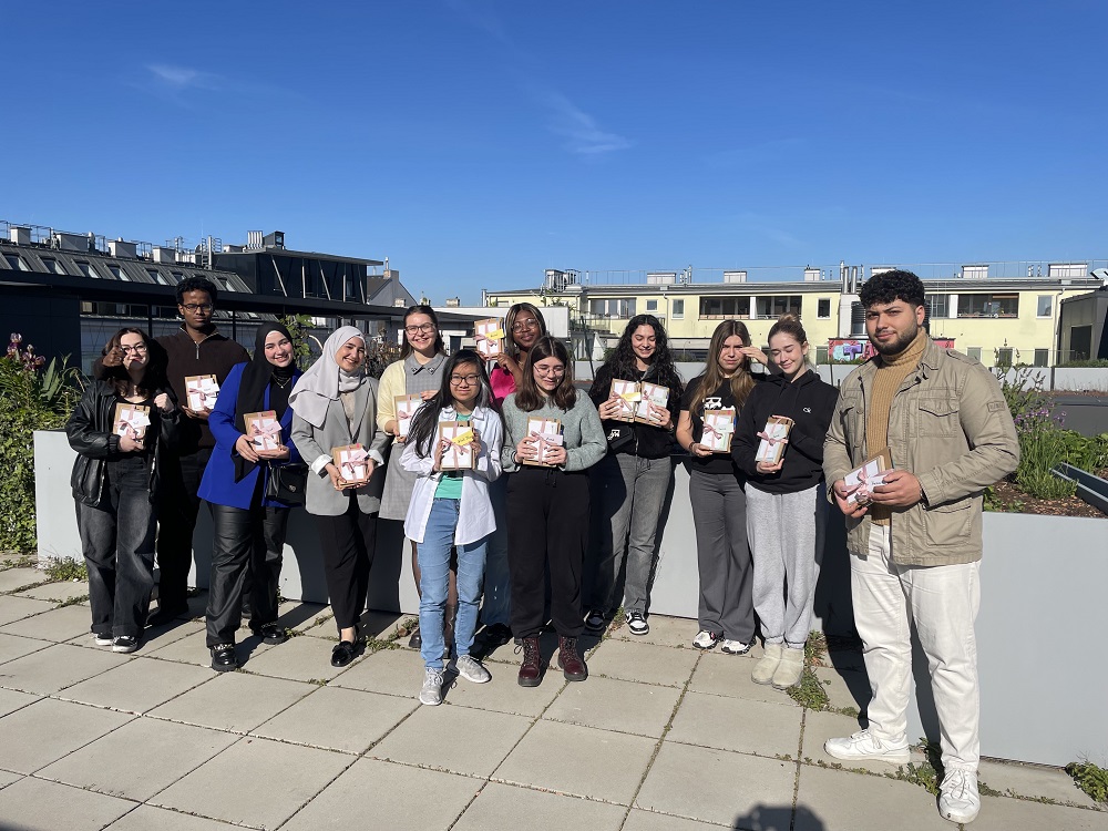 Nach der Zeugnisverteilung und der Übergabe der Abschlussgeschenke auf der Dachterrasse, ließ die 8M ihren letzten Schultag bei einem gemütlichen Frühstück im Museumsquartier gemeinsam ausklingen.