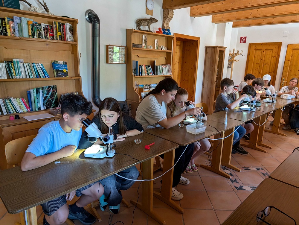Die 3C verbrachte ihre Projekttage im Nationalparkhaus Donauauen des NHM. Unter Begleitung eines Rangers erkundeten wir auf teils sehr schlammigen Wegen den Nationalpark vor den Toren Wiens und erfuhren so manches über die Ökologie, Fauna und Flora des Auwaldes. Wir überquerten den Donaustrom mit einer kleinen Fähre und paddelten mit Schlachbooten in den Altarmen um die Wette. In einem flachen Altgewässer konnten wir uns erfrischen und eine junge Äskulapnatter bewundern, die unser Ranger für uns gefangen hatte. Am Abend durfte ein Lagerfeuer nicht fehlen. Am letzten Tag tümpelten wir im Teich und betrachteten unsere Ausbeute im Mikroskop.