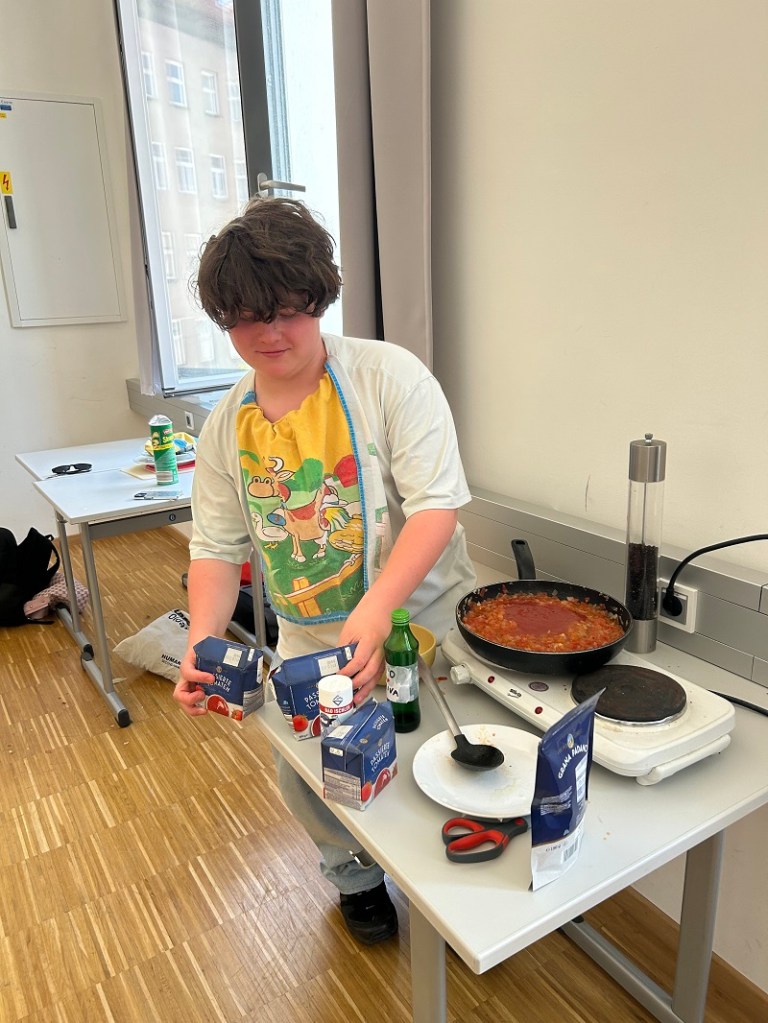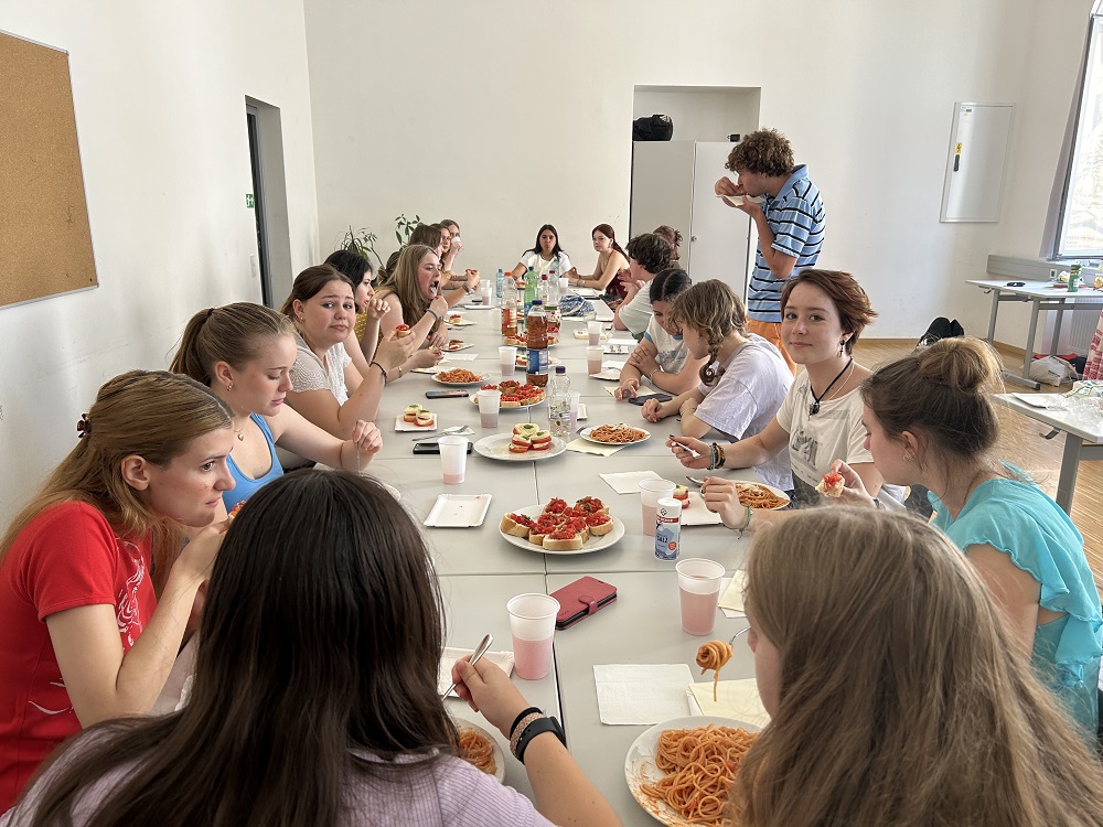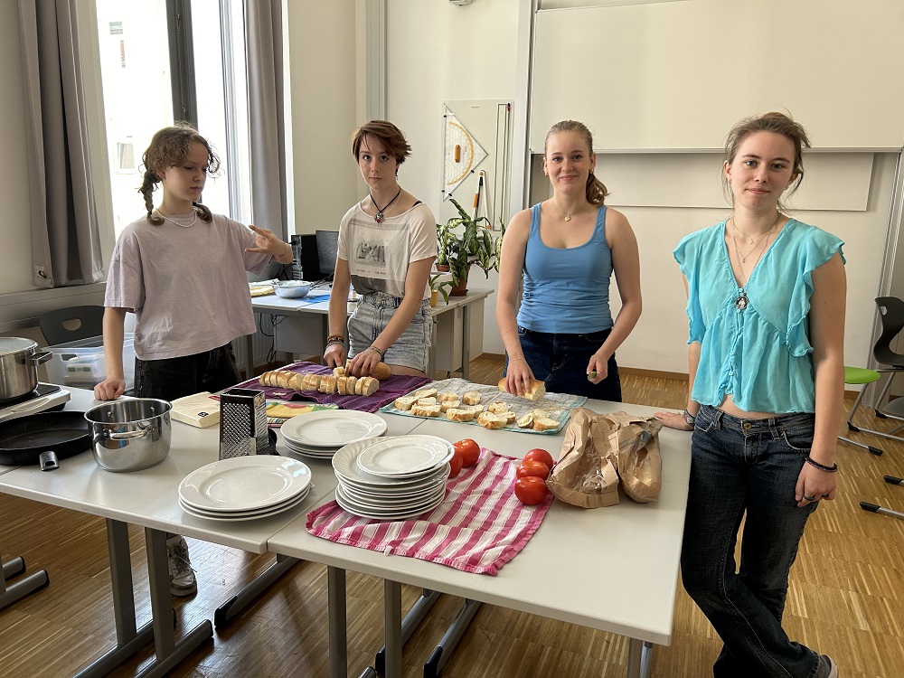In der letzten Schulwoche bewies die Klasse 6T ihr kulinarisches Können. Gemeinsam bereiteten sie eine italienische Speise bestehend aus Caprese, Bruschetta und Pasta zu, die im Anschluss mit Genuss und passender mediterraner Musik verspeist wurde.