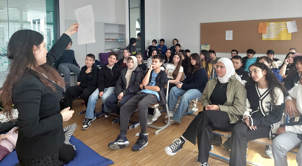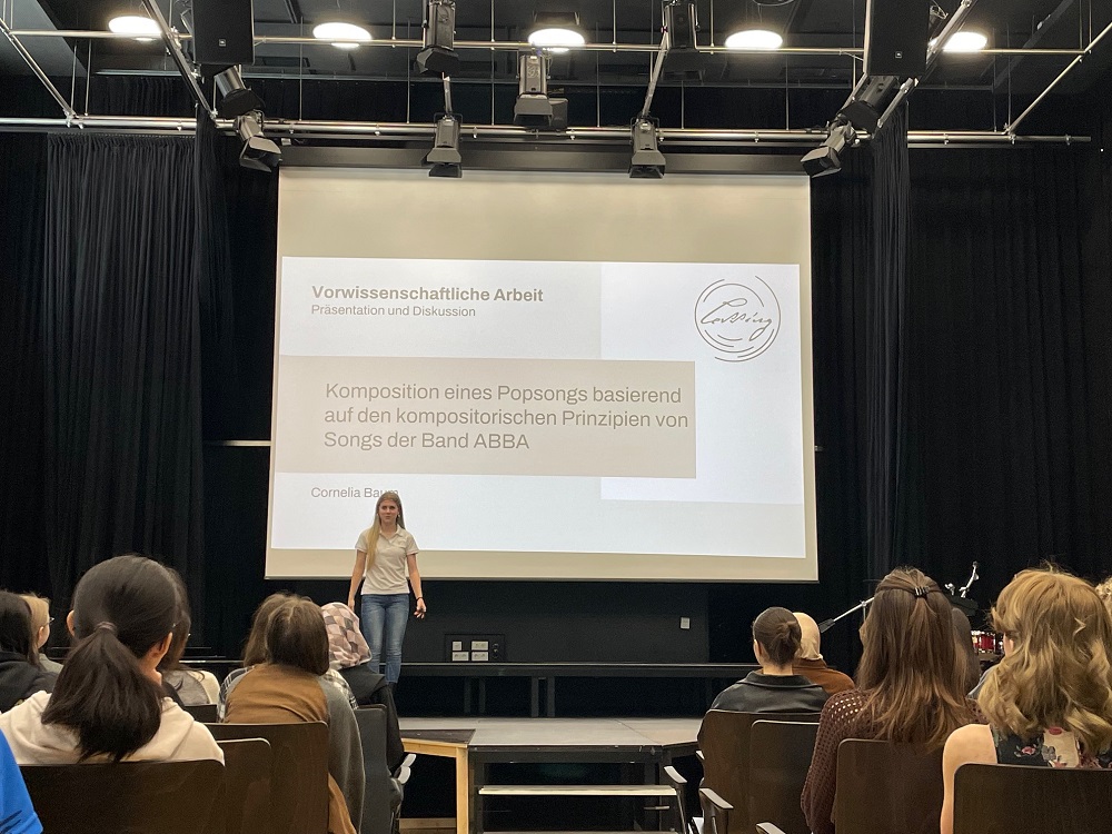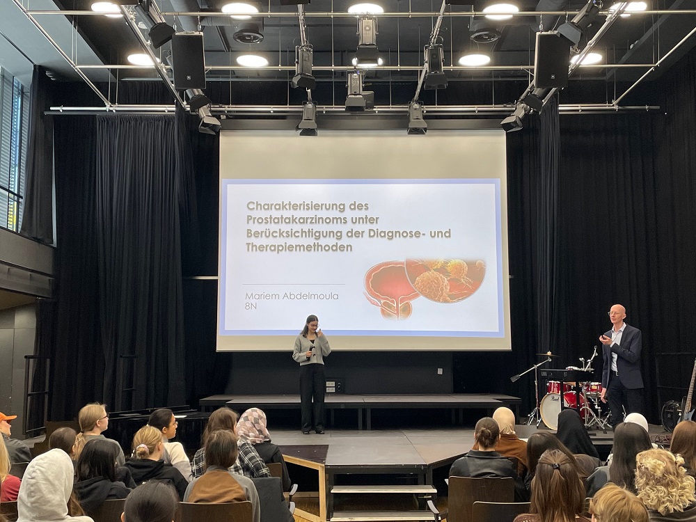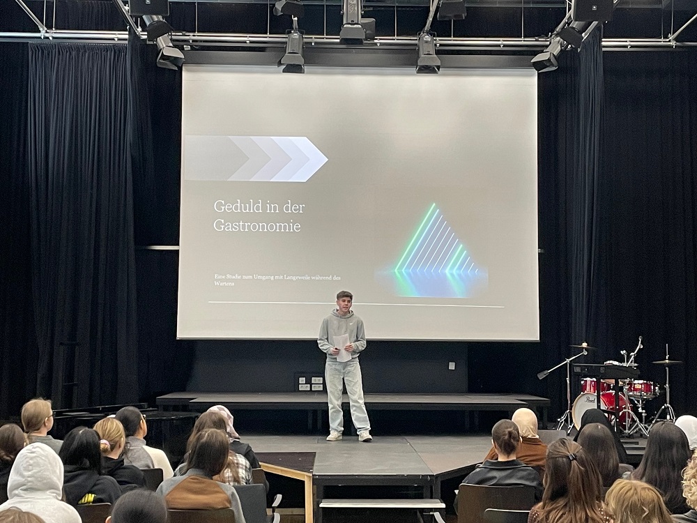 Schüler*innen der 8. Klassen, die ein „Sehr gut“ auf ihre Vorwissenschafltiche Arbeit erhalten hatten, lasen ihr Abstract und ihr Fazit vor Schüler*innen der Oberstufe.